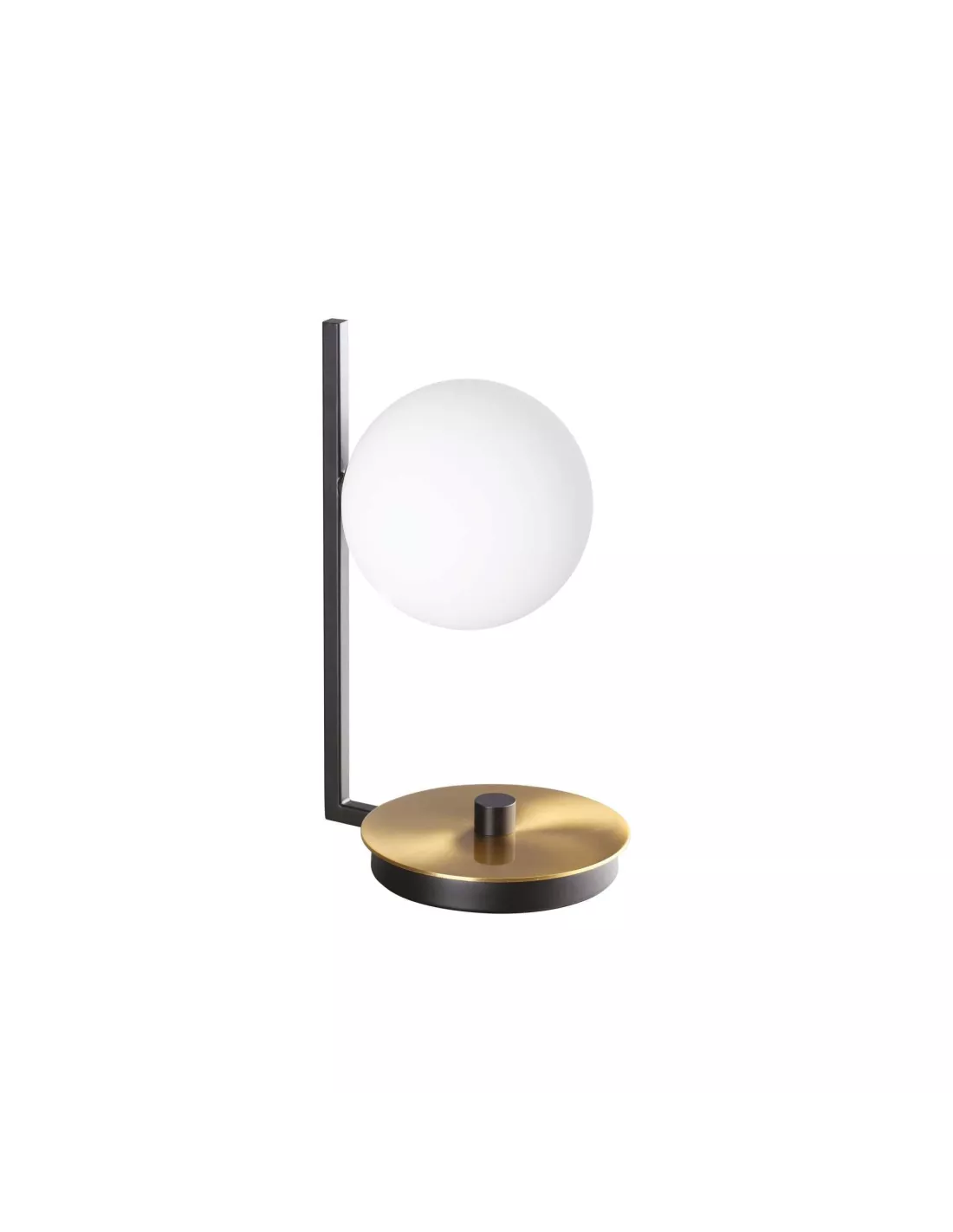 Lampe design ronde blanche avec structure en métal noir mat et laiton satiné, Ideal Lux