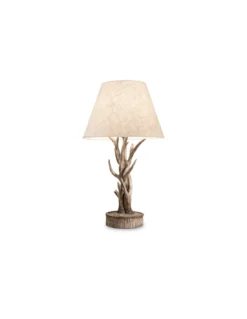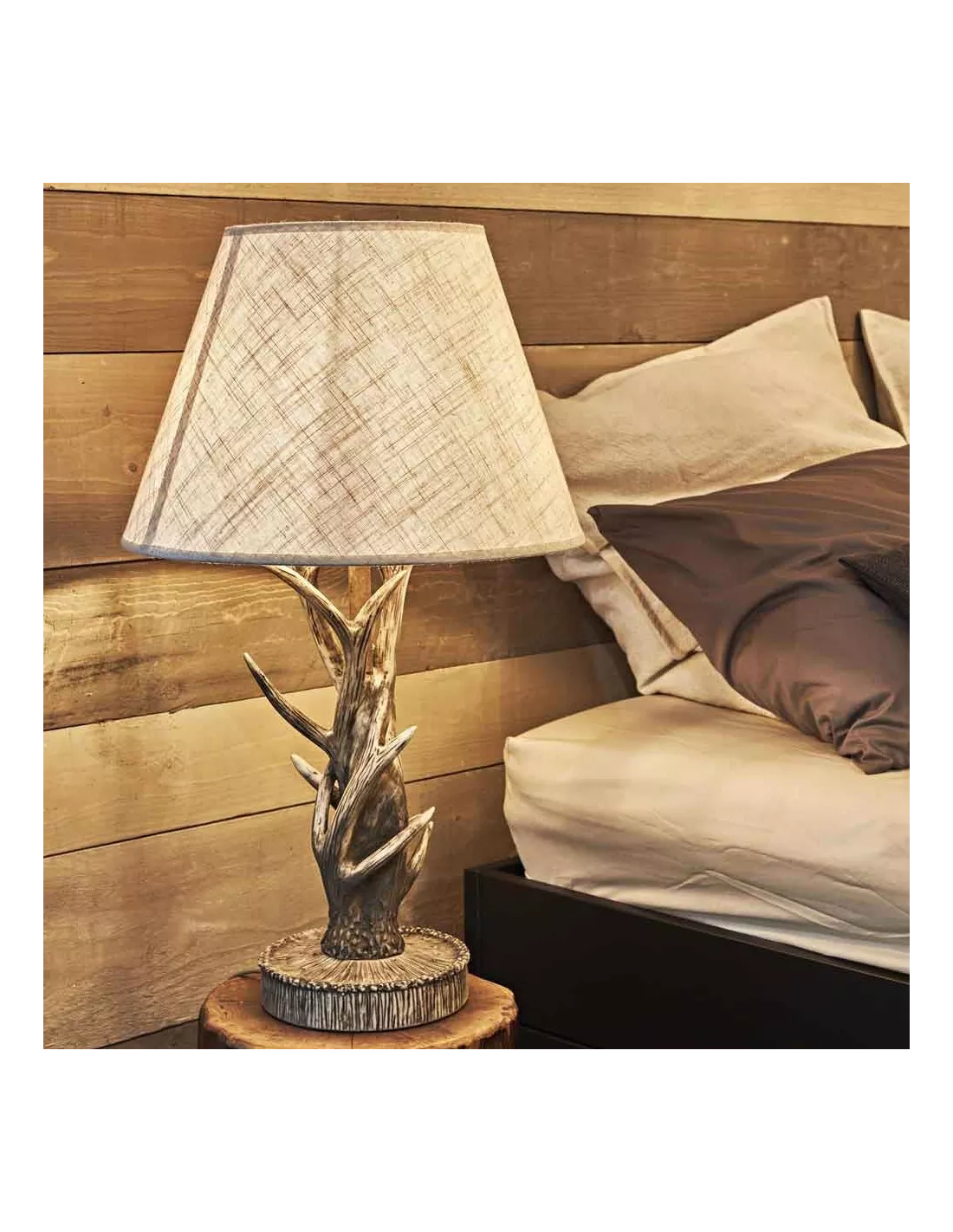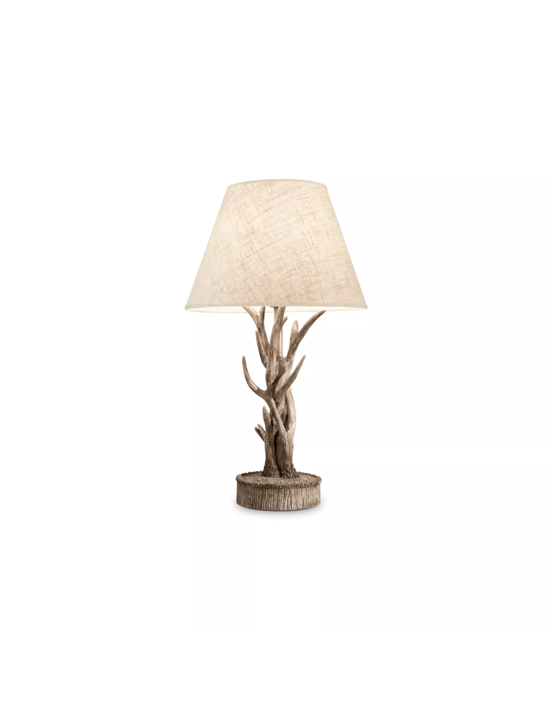 Lampe de table de bois de cerfs et abat-jour en tissu beige, Ideal Lux