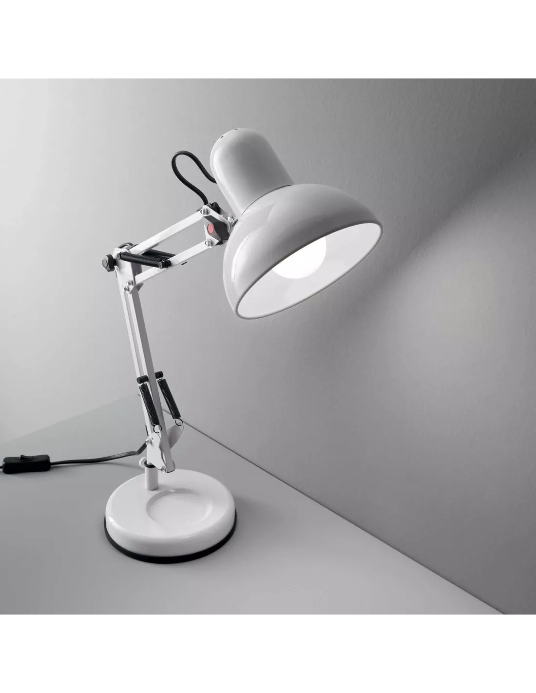 La lampe de bureau blanche Kelly est dotée d’un bras articulé et d’un diffuseur réglable, qui trouvera sa place sur un bureau de grand comme sur celui d’un enfant. Cette lampe de bureau noire s’intègre parfaitement dans tous les styles d’intérieur, du plus classique au plus contemporain. Sa structure est en métal verni blanc mat.
