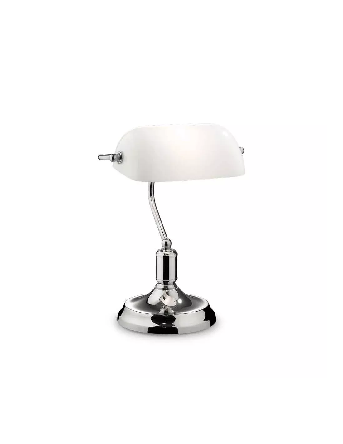 Lampe de bureau en métal chromé et abat-jour en verre blanc opalin, Ideal Lux