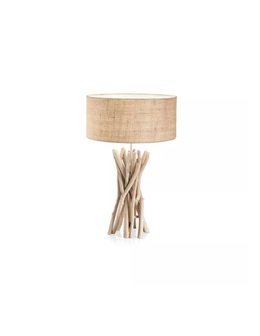 Lampe de table en bois flotté et abat-jour beige en tissu, Ideal Lux