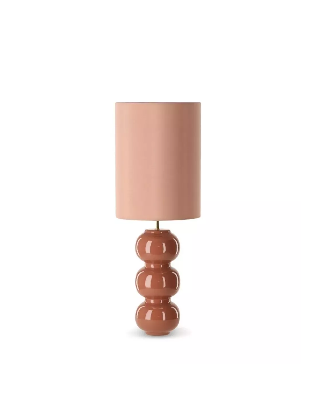 Cet assemblage de formes et de matières crée un effet visuel original et marquant, qui saura trouver sa place aussi bien dans une décoration contemporaine que rétro. Cette lampe terracotta diffuse une lumière douce et tamisée.