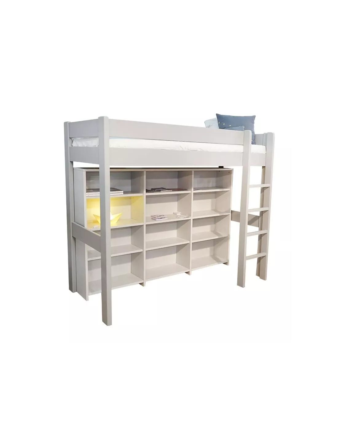 Le lit mezzanine bibliothèque Dominique est un couchage idéal pour gagner de la place dans la chambre de votre enfant. Du fait de son couchage très surélevé, l’espace libre en-dessous vous permettra d’installer des éléments de rangement pour jouets et livres. Mathy by Bols a imaginé des éléments tels que des caissons à glisser sous le lit.