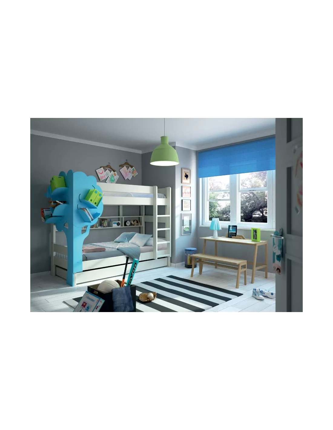 Il dispose d’une étagère sur toute la longueur permettant à votre enfant d’y exposer ses livres et jouets. La hauteur entre les 2 longerons est de 92 cm.