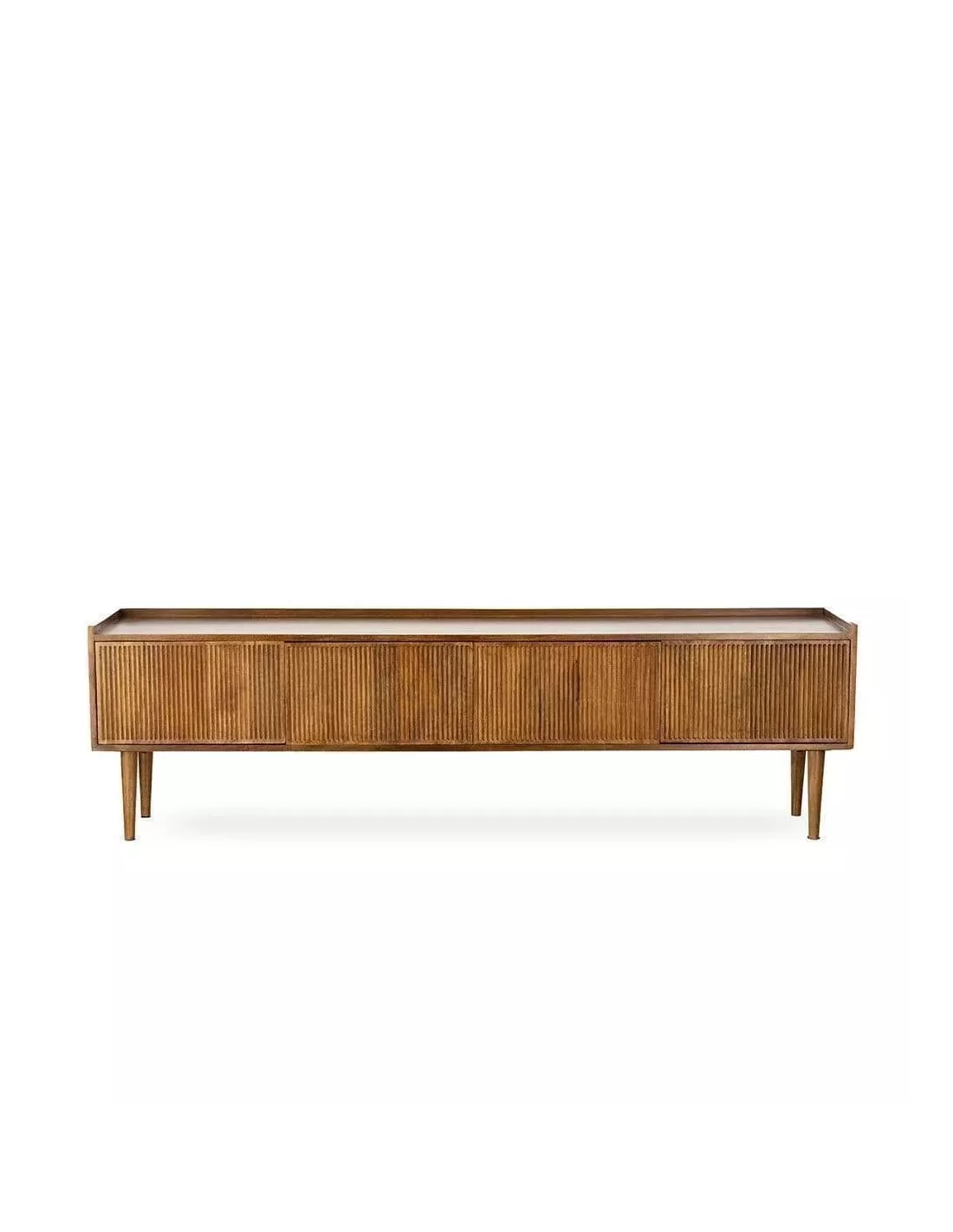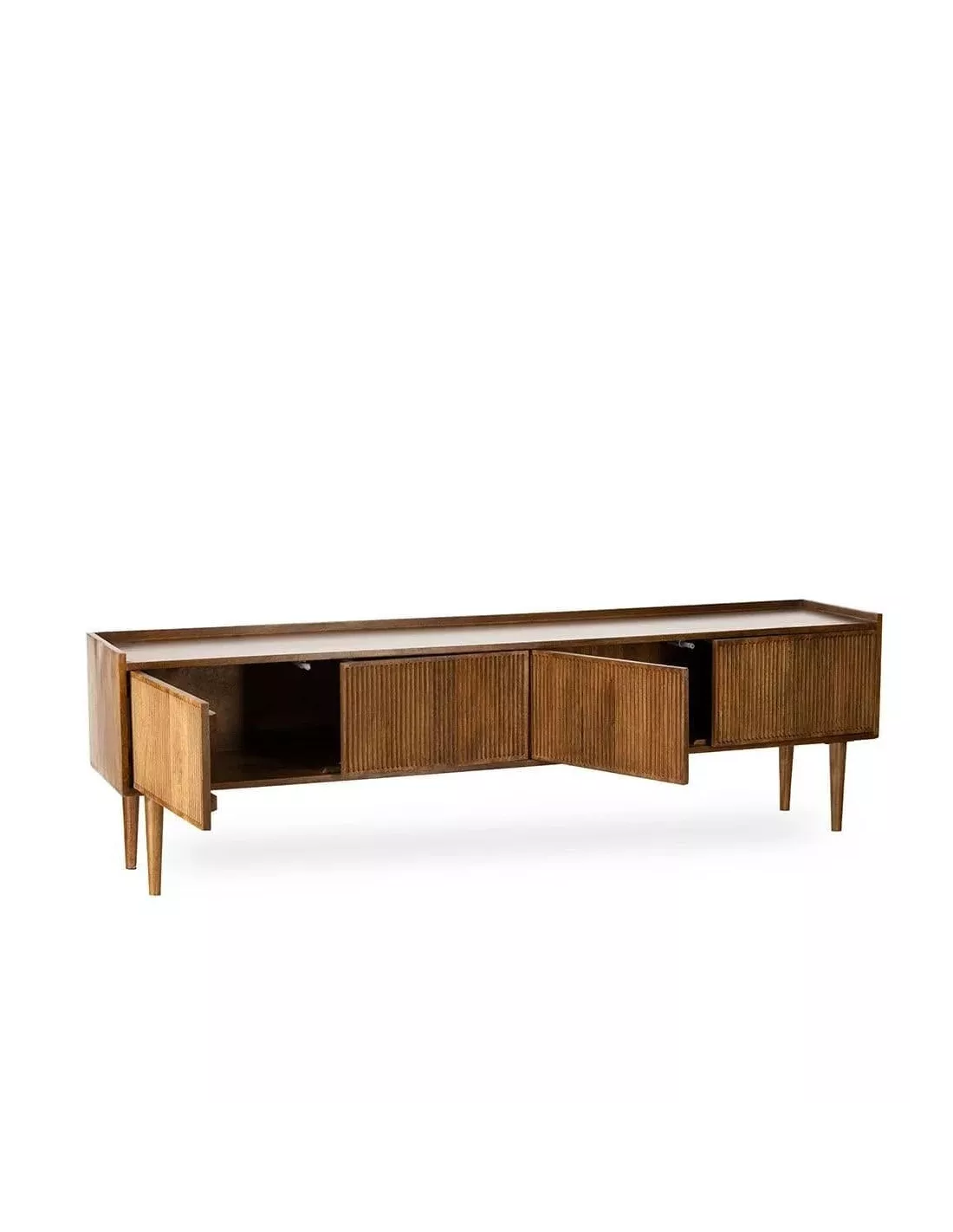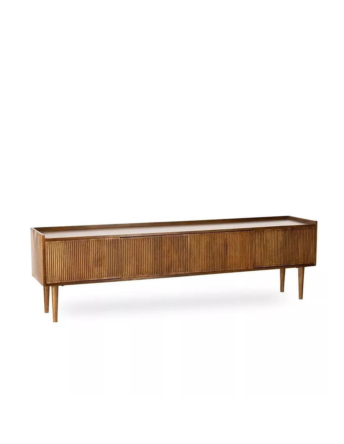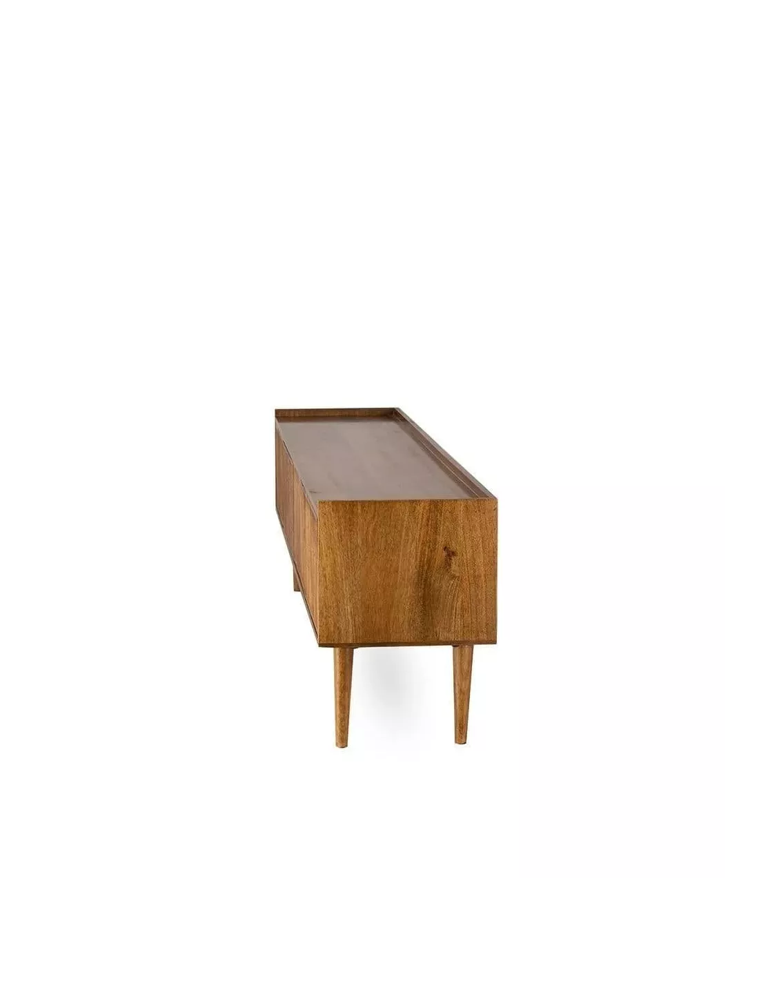 Ce meuble TV est non seulement un ajout élégant à tout salon, mais il est également réalisé de façon durable. Fabriqué à partir de bois de manguier durablement sourcé, ce meuble TV allie qualités esthétiques et responsabilité environnementale. Le bois de manguier, connu pour sa robustesse et sa longévité, apporte une touche d’authenticité à votre intérieur tout en vous assurant que votre choix contribue à la préservation de l’environnement. La combinaison du blanc éclatant et du bois naturel crée un contraste harmonieux qui s’adapte à tout type de décoration, du plus classique au plus moderne.