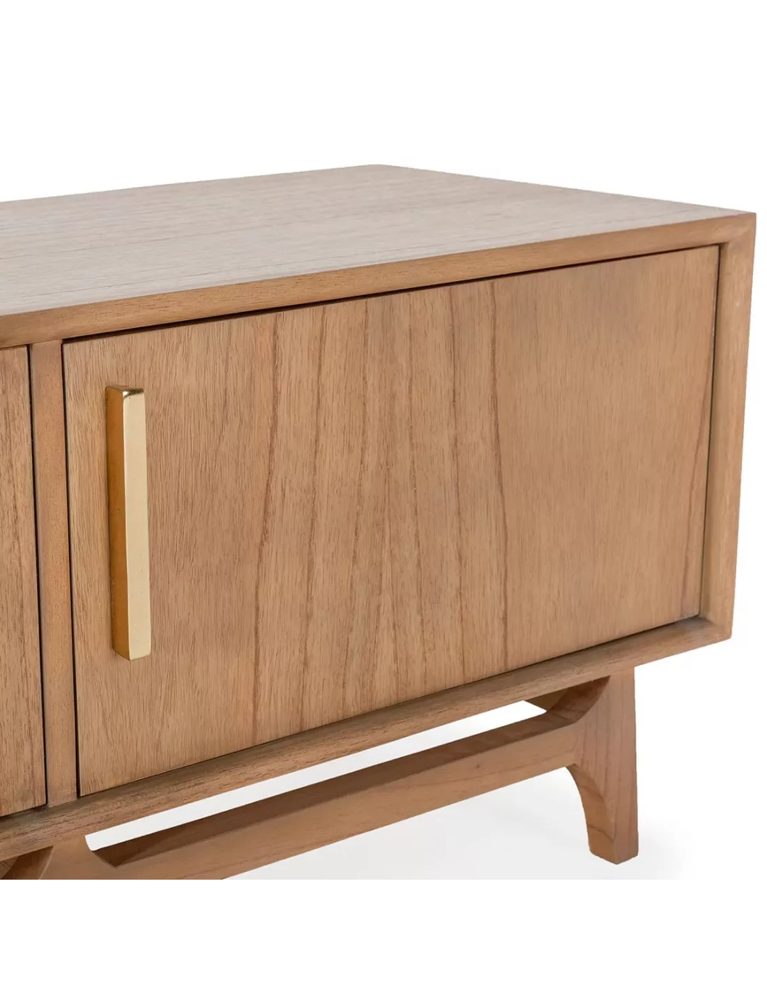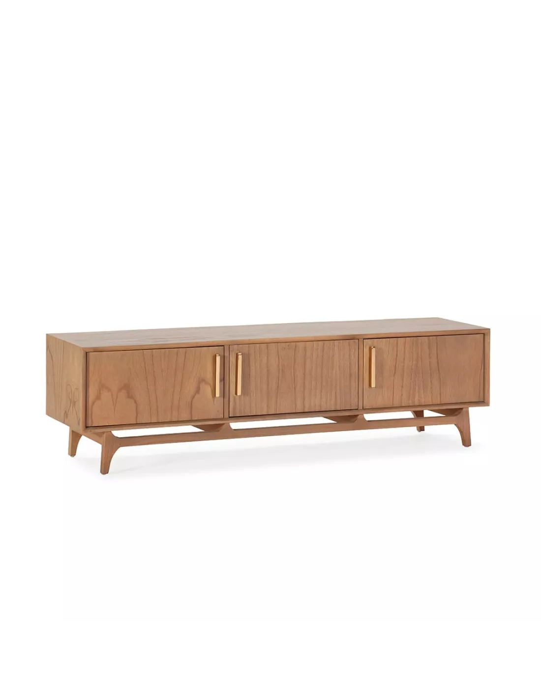 Meuble TV en bois naturel légèrement grisé 3 portes 160cm, Thai Natura