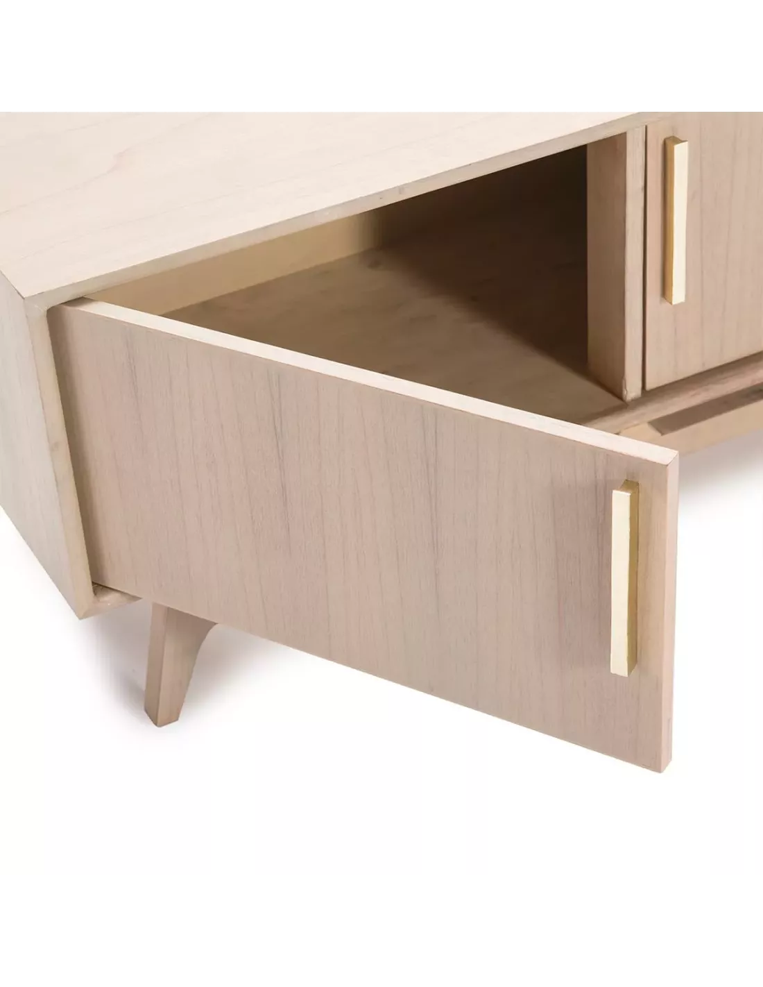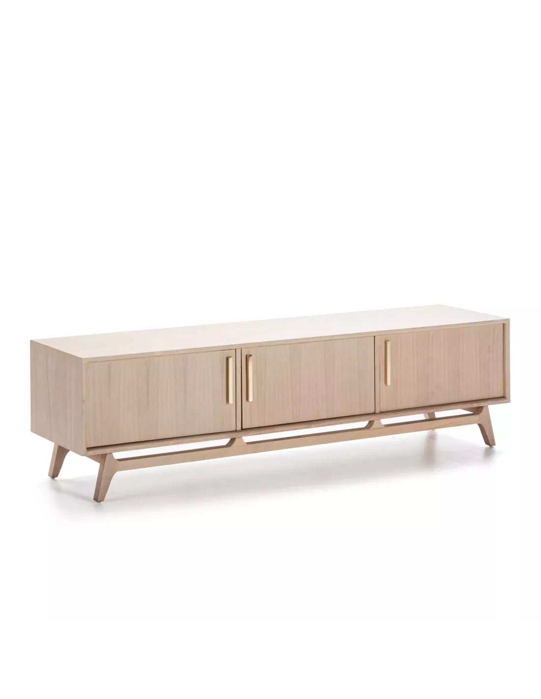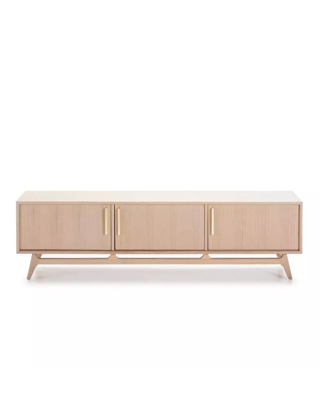 Meuble TV en bois naturel clair légèrement grisé 3 portes 160cm, Thai Natura