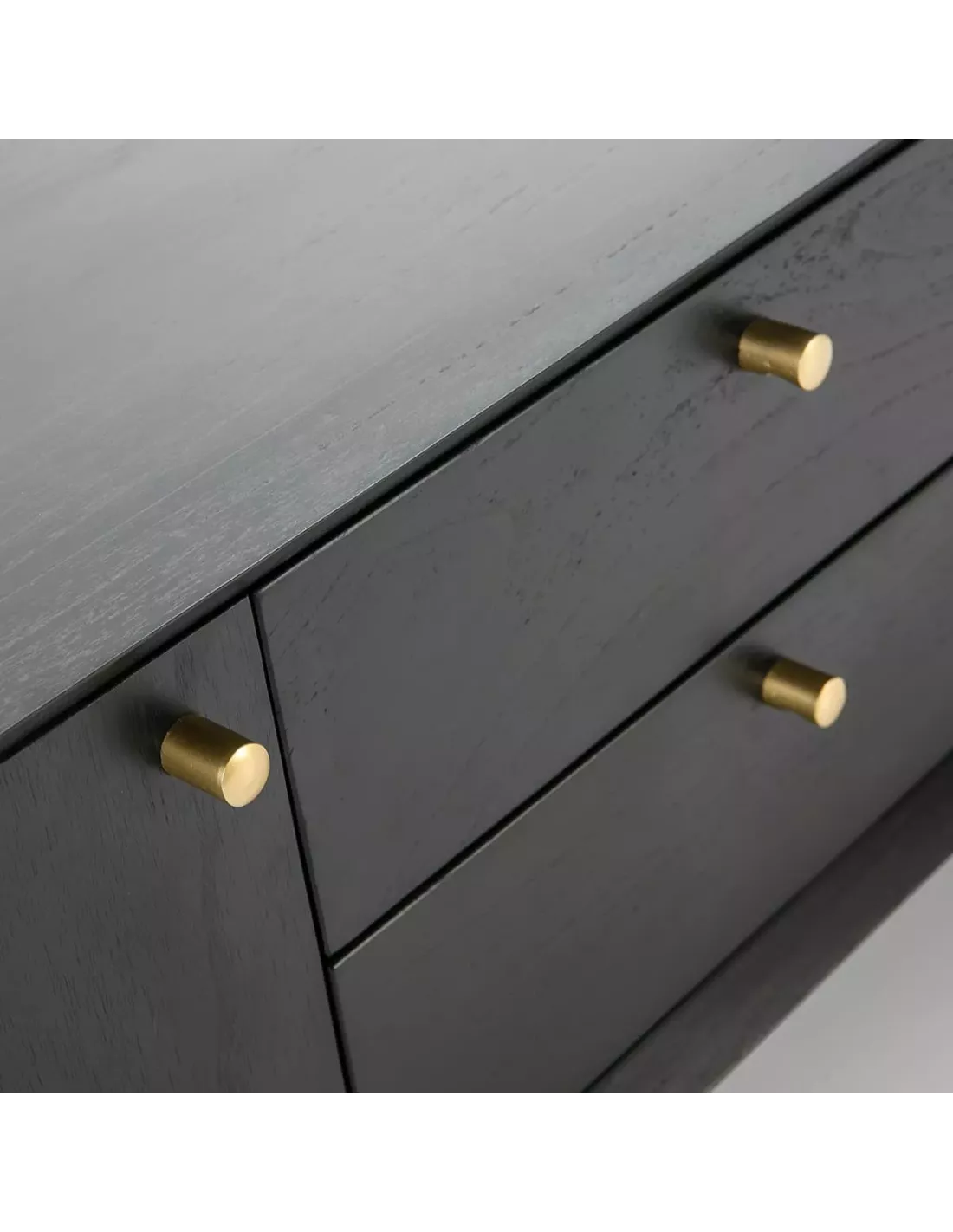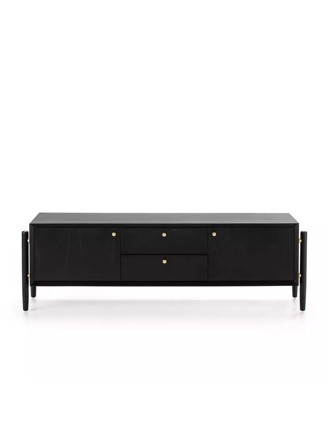 Meuble TV en bois noir 2 portes 2 tiroirs et poignées noires 160cm, Thai Natura