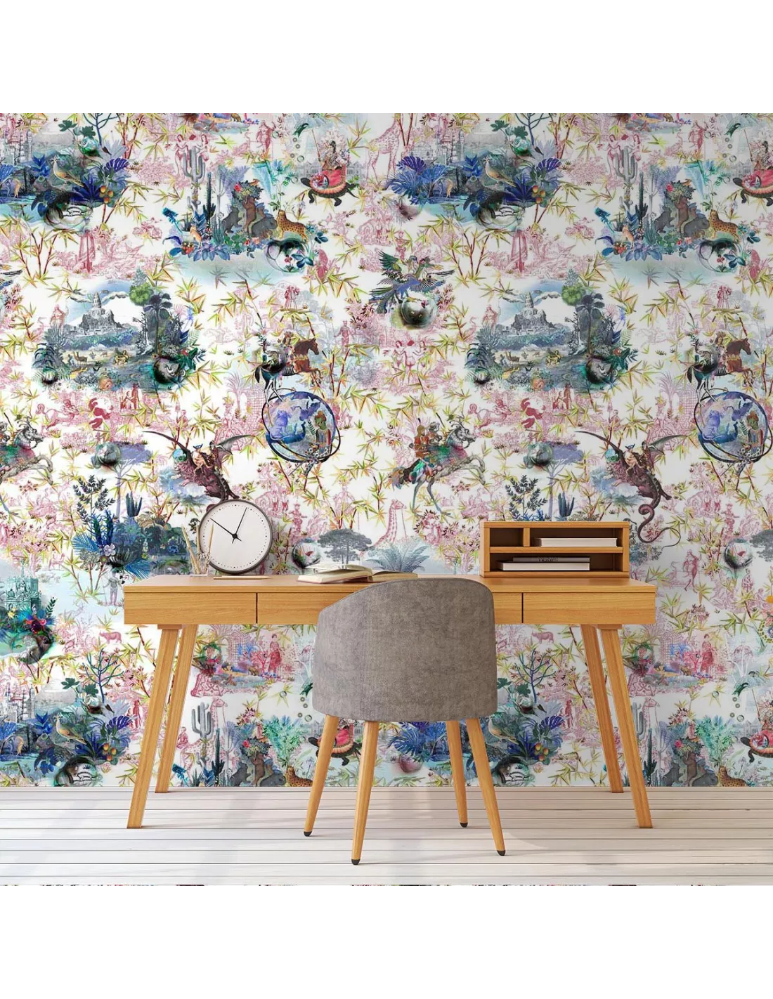 Panneau décoratif Christian Lacroix qui vous permet de voyager dans le monde des rêves. Sur une toile de fond pas si conventionnelle que ça, des créatures mythiques et des images se mélangent dans un royaume magique. Ce panneau décoratif en papier peint est réalisé sur un luxueux support intissé, ce qui rend la pose du panneau plus facile. La colle doit être appliquée sur le mur.
