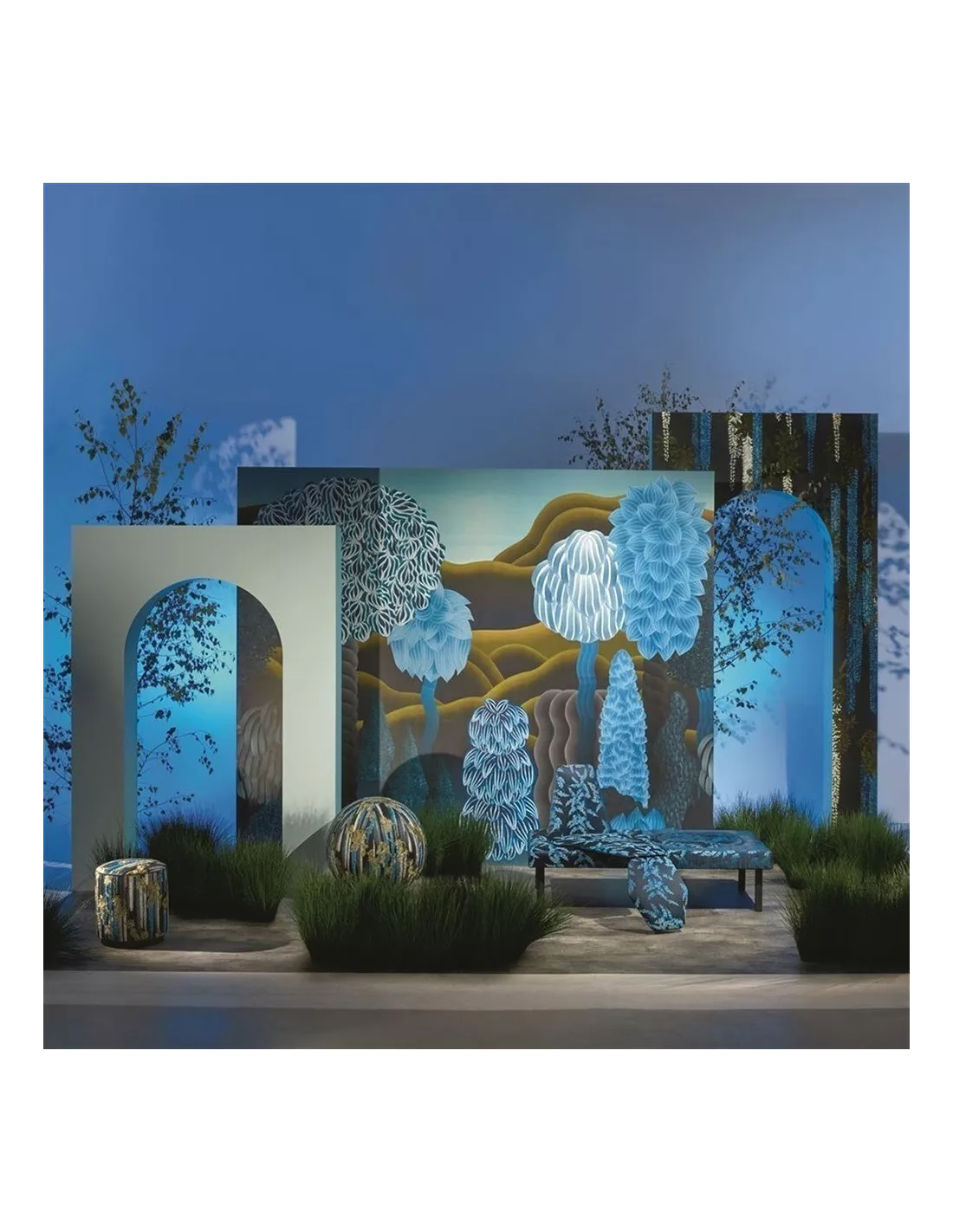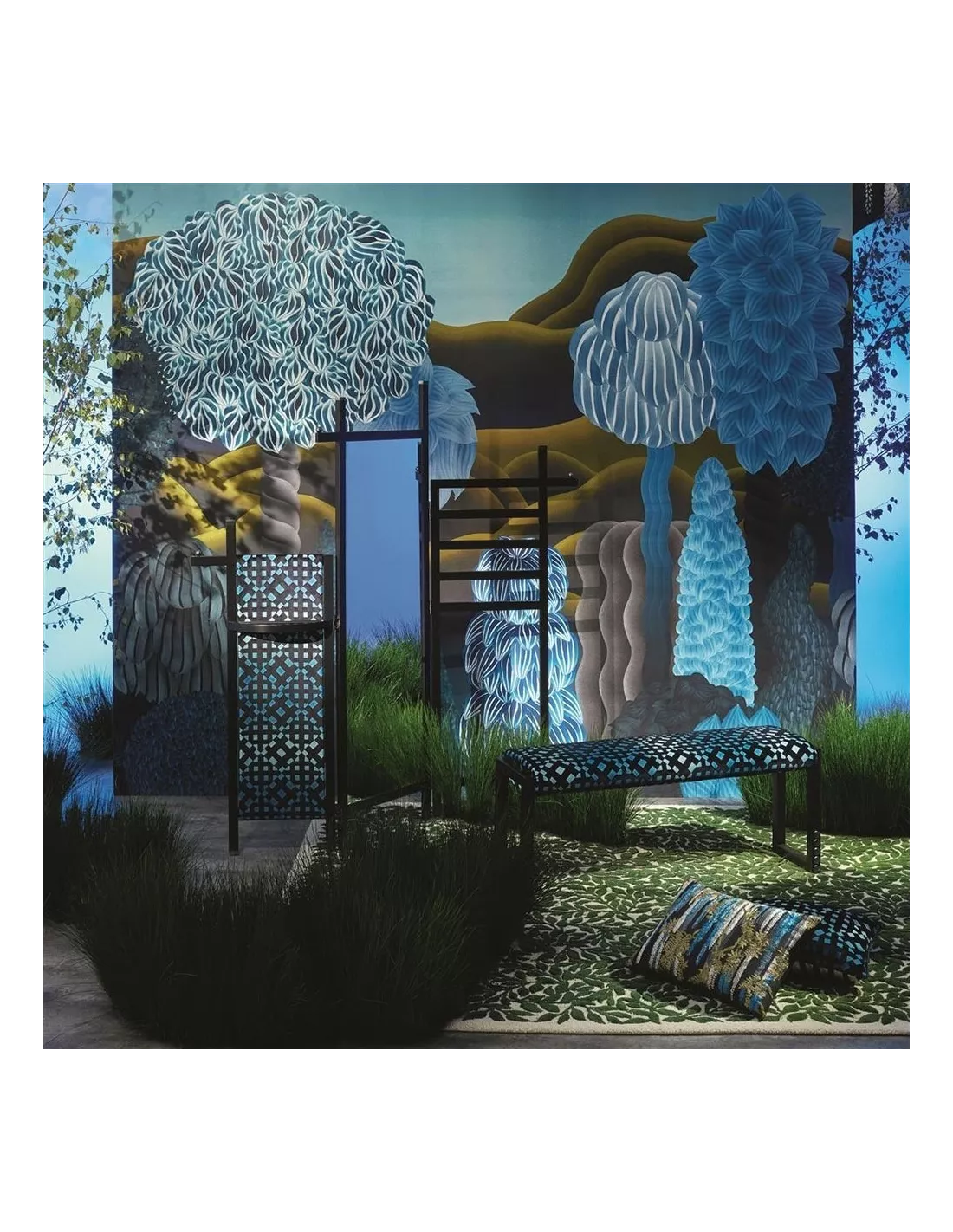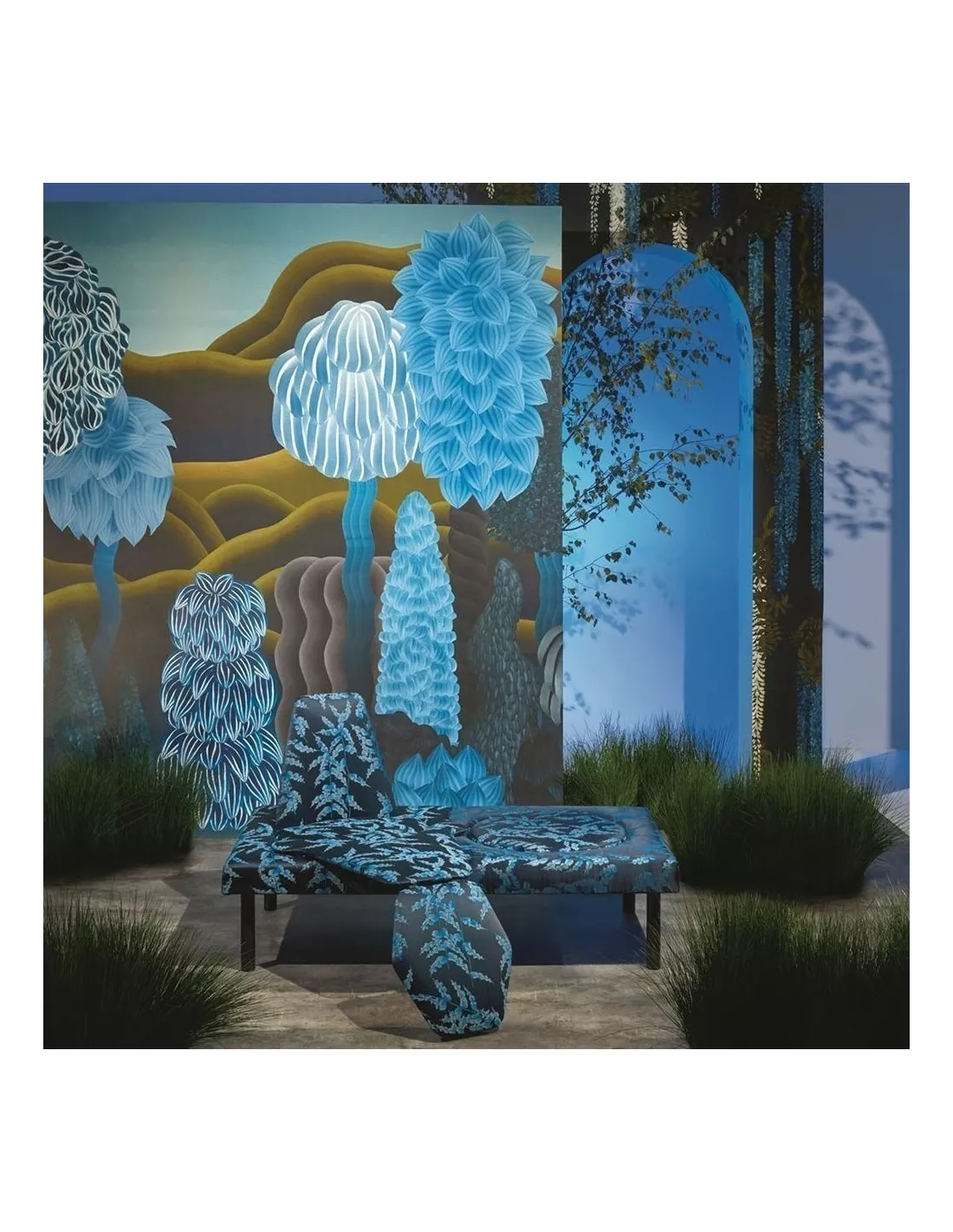 Panneau décoratif de papier peint à l’univers onirique dans les tons de bleu, Christian Lacroix