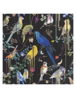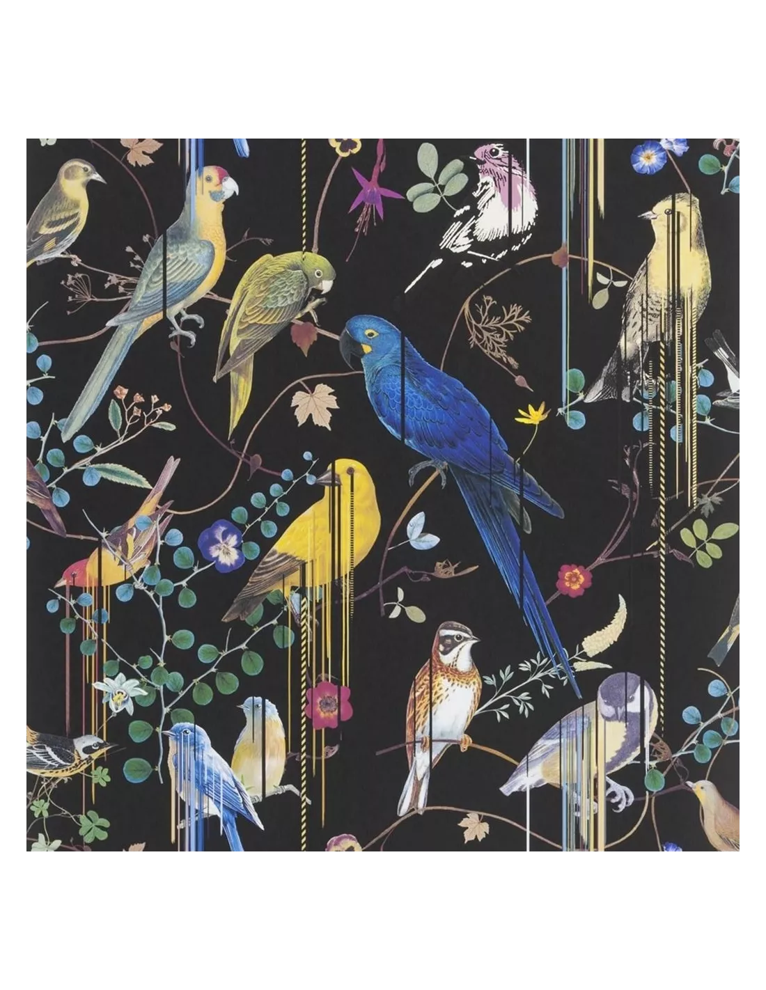 Papier peint aux somptueux oiseaux multicolore sur fonds noir, Christian Lacroix
