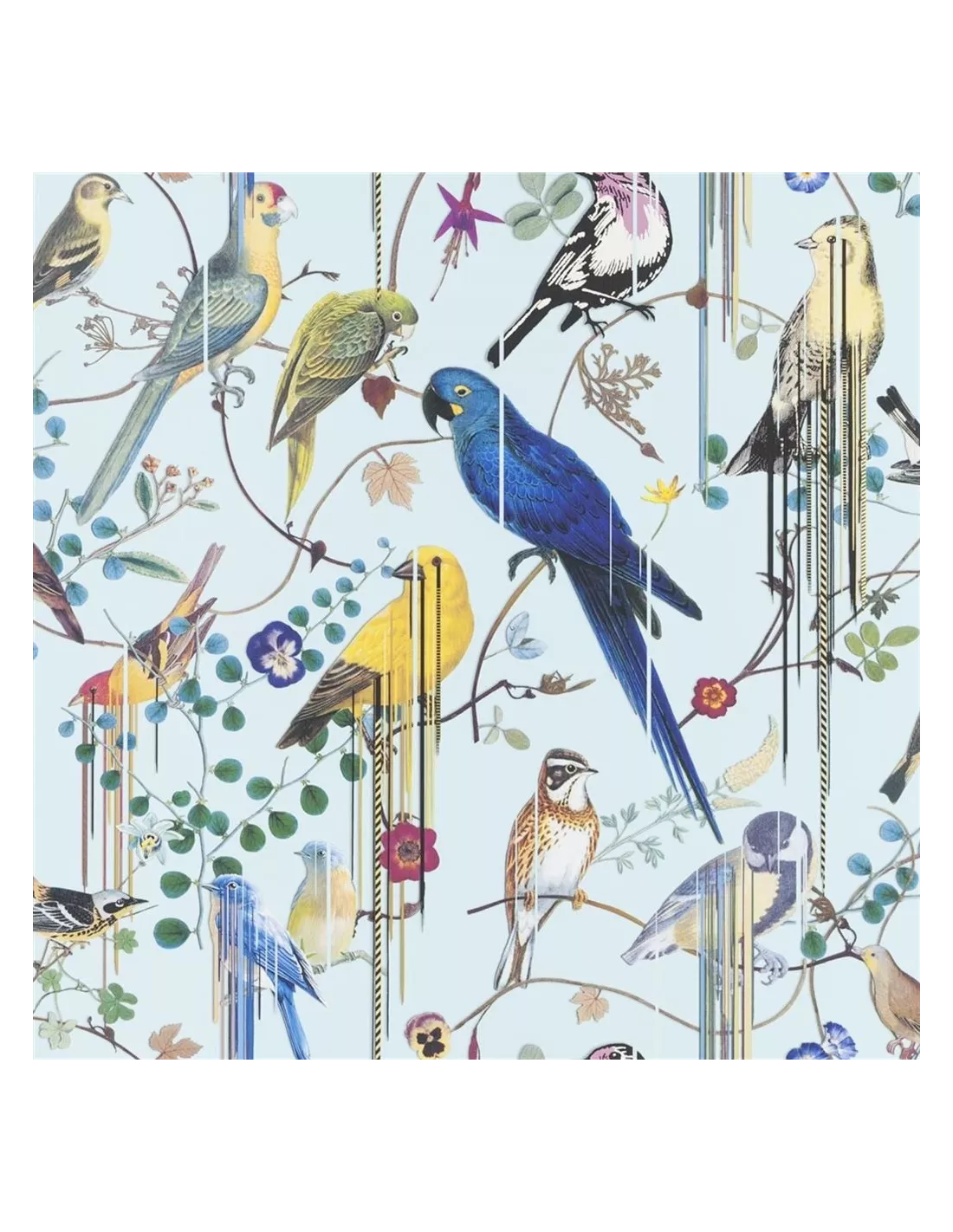Papier peint aux somptueux oiseaux multicolore sur fonds bleu ciel, Christian Lacroix
