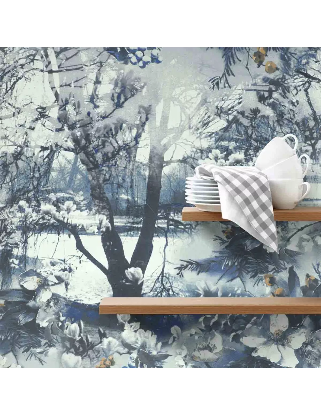 Le papier peint Brume Encre Jean Paul Gaultier est tout en relief avec des effets de mat et de brillance. Il met en scène un paysage hors du temps où lac et rosée scintillent. L’effet irréel est accentué par un jeu de transparence tout en délicatesse.