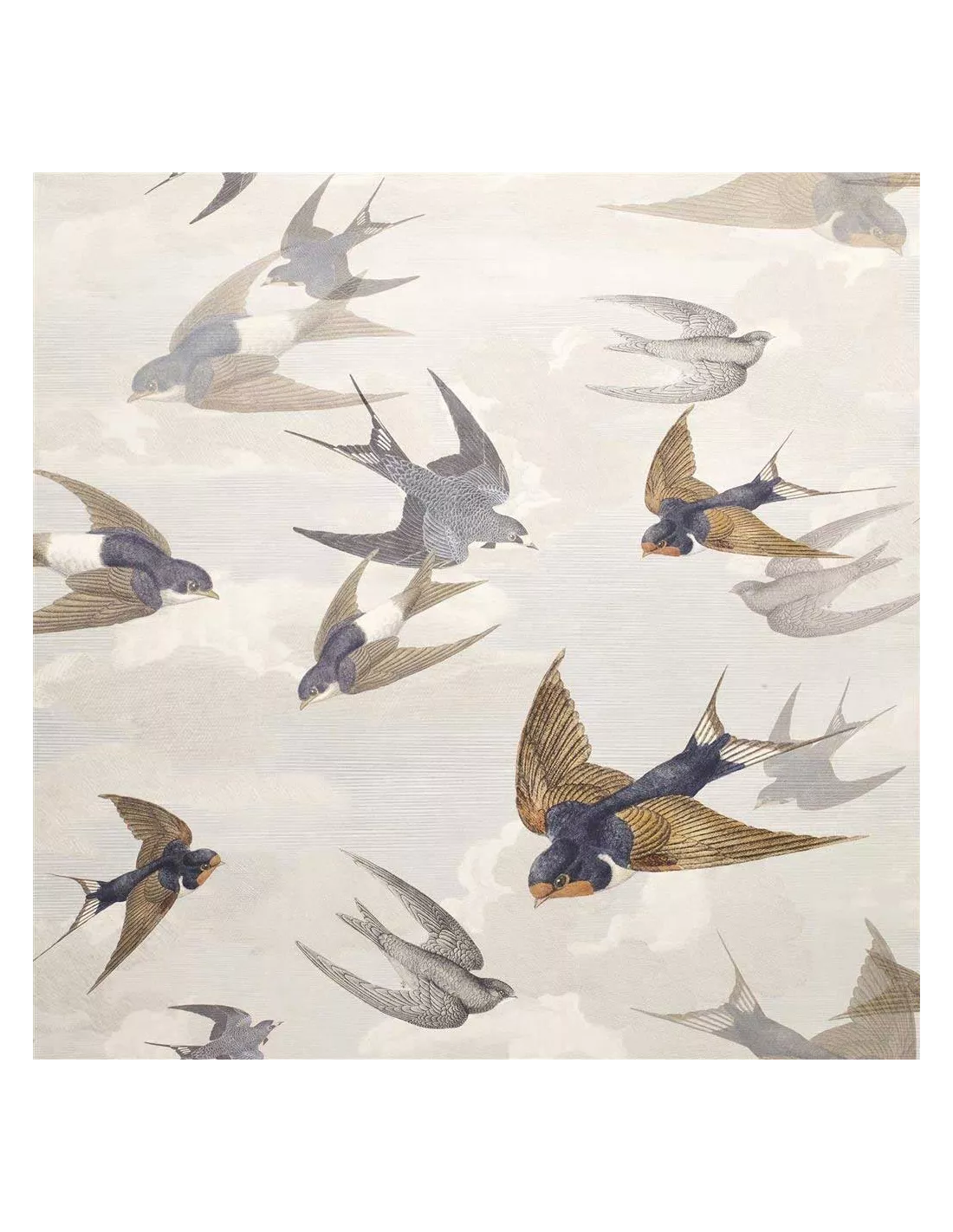 Papier peint hirondelles gris et bleu, John Dorian