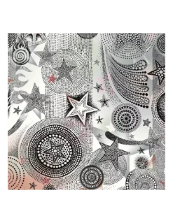 Papier peint Intissé noir et blanc aux motifs d’étoiles composées par des pointillés éparpillées entre des formes géométrique, Jean Paul Gaultier