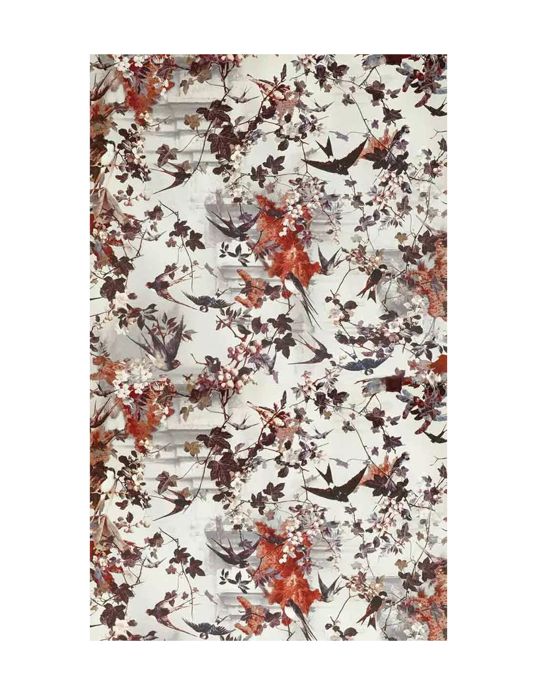 Papier peint à fleurs et hirondelles gris, Jean Paul Gaultier