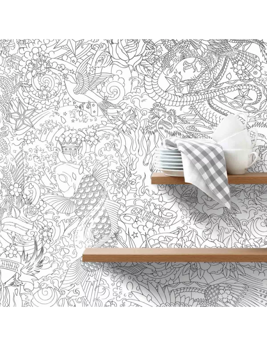 Le papier peint Horimono Argent Jean Paul Gaultier est un papier peint intissé, ce qui rend sa pose plus facile. La colle doit être appliquée sur le mur. Ce papier peint Jean Paul Gaultier se distingue par une belle interprétation graphique dans un esprit de tatouage raffiné.