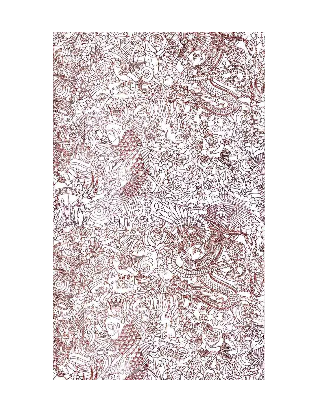 Le papier peint Horimono Grenat Jean Paul Gaultier est un papier peint intissé, ce qui rend sa pose plus facile. La colle doit être appliquée sur le mur. Ce papier peint Jean Paul Gaultier se distingue par une belle interprétation graphique dans un esprit de tatouage raffiné.