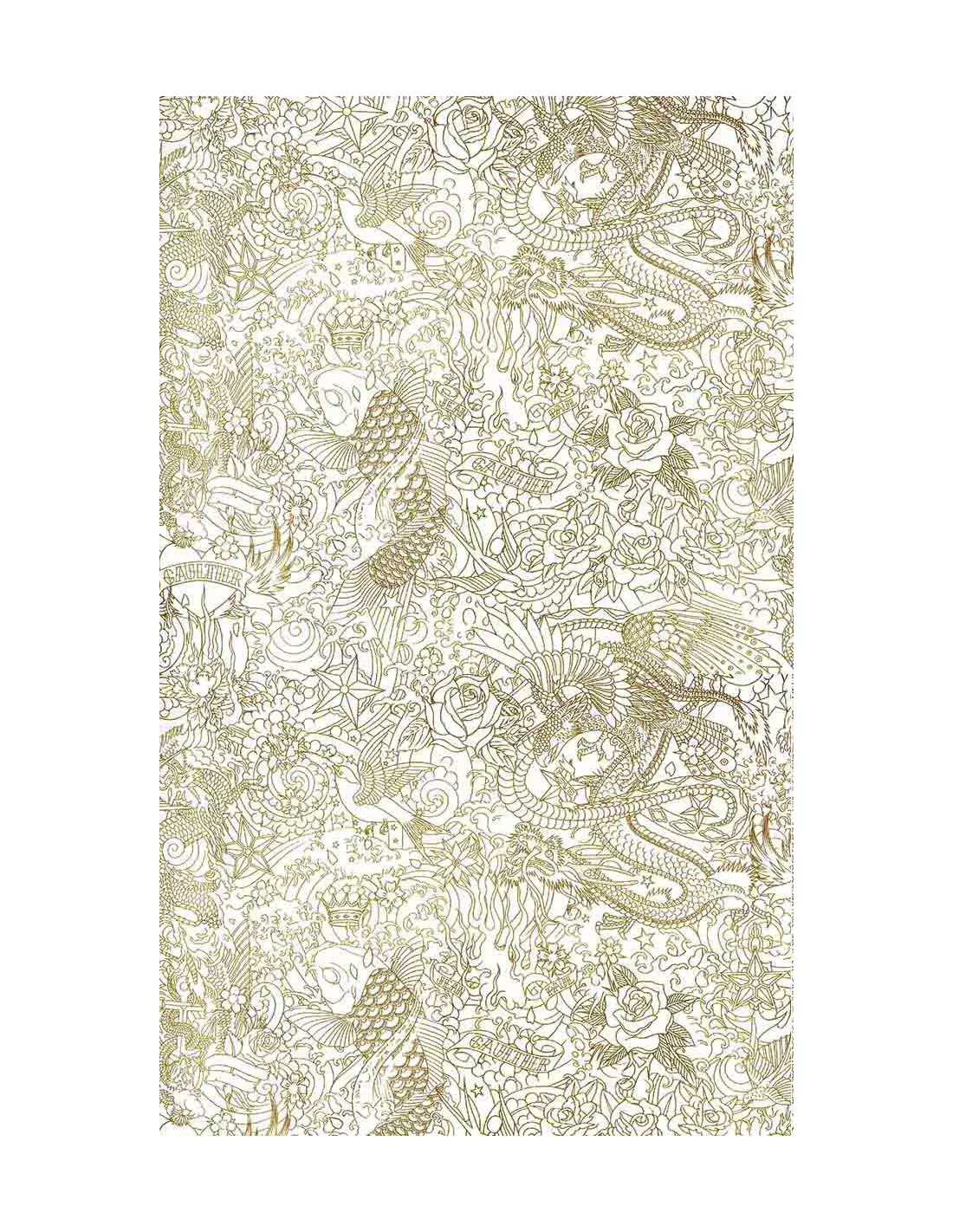 Le papier peint Horimono Or Jean Paul Gaultier est un papier peint intissé, ce qui rend sa pose plus facile. La colle doit être appliquée sur le mur. Ce papier peint Jean Paul Gaultier se distingue par une belle interprétation graphique dans un esprit de tatouage raffiné.