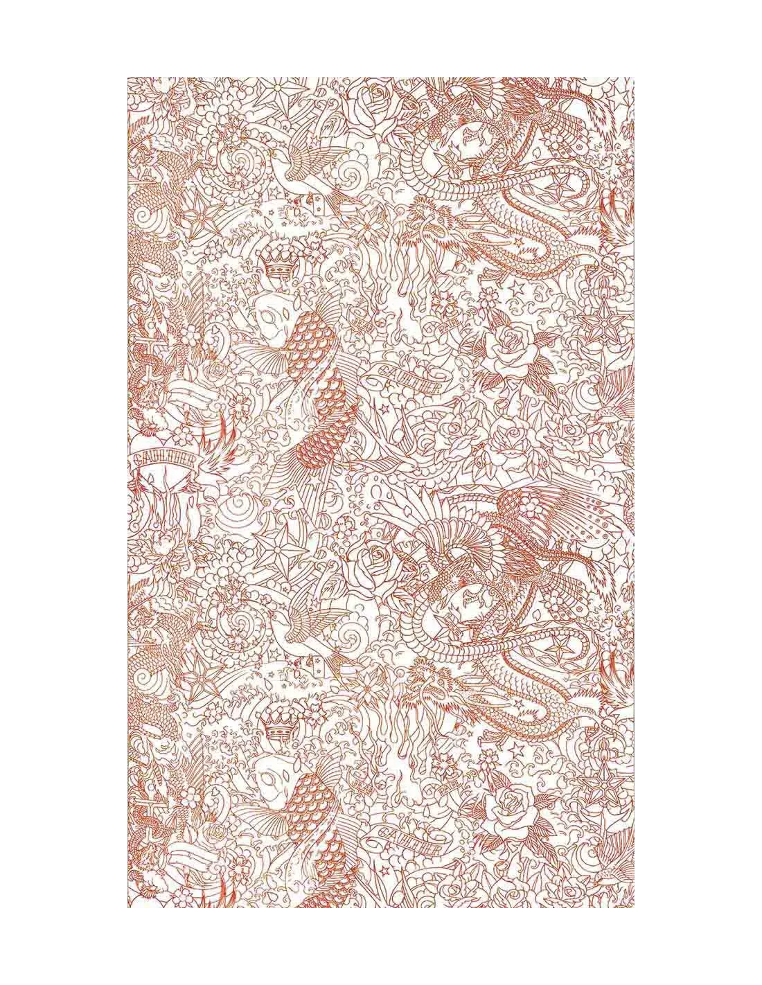 Le papier peint Horimono Orange Jean Paul Gaultier est un papier peint intissé, ce qui rend sa pose plus facile. La colle doit être appliquée sur le mur. Ce papier peint Jean Paul Gaultier se distingue par une belle interprétation graphique dans un esprit de tatouage raffiné.