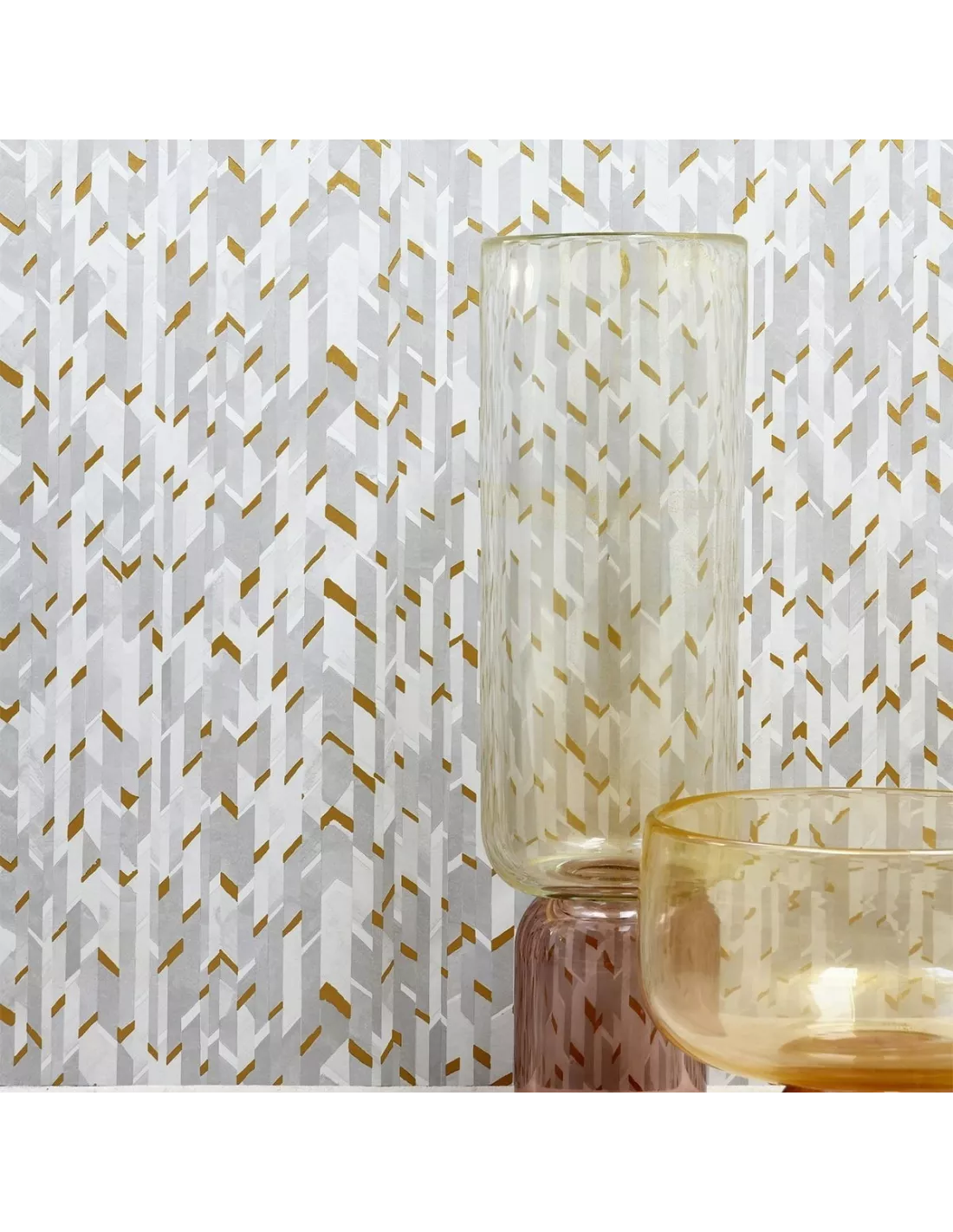 Laissez-vous séduire par la beauté du papier peint Marqueterie Marbre. Paré d’un motif de chevrons déstructurés, il attire les regards par son dessin surprenant. La myriade de formes s’habille de couleurs camaïeu pour rehausser son esthétique. Une touche métallique, dorée ou cuivrée, y ajoute encore plus de sophistication. Cette création proposée par Lelièvre témoigne du savoir-faire et de l’expertise de la marque. Ce papier peint possède un support intissé, ce qui rend sa pose plus facile. La colle doit être appliquée sur le mur.