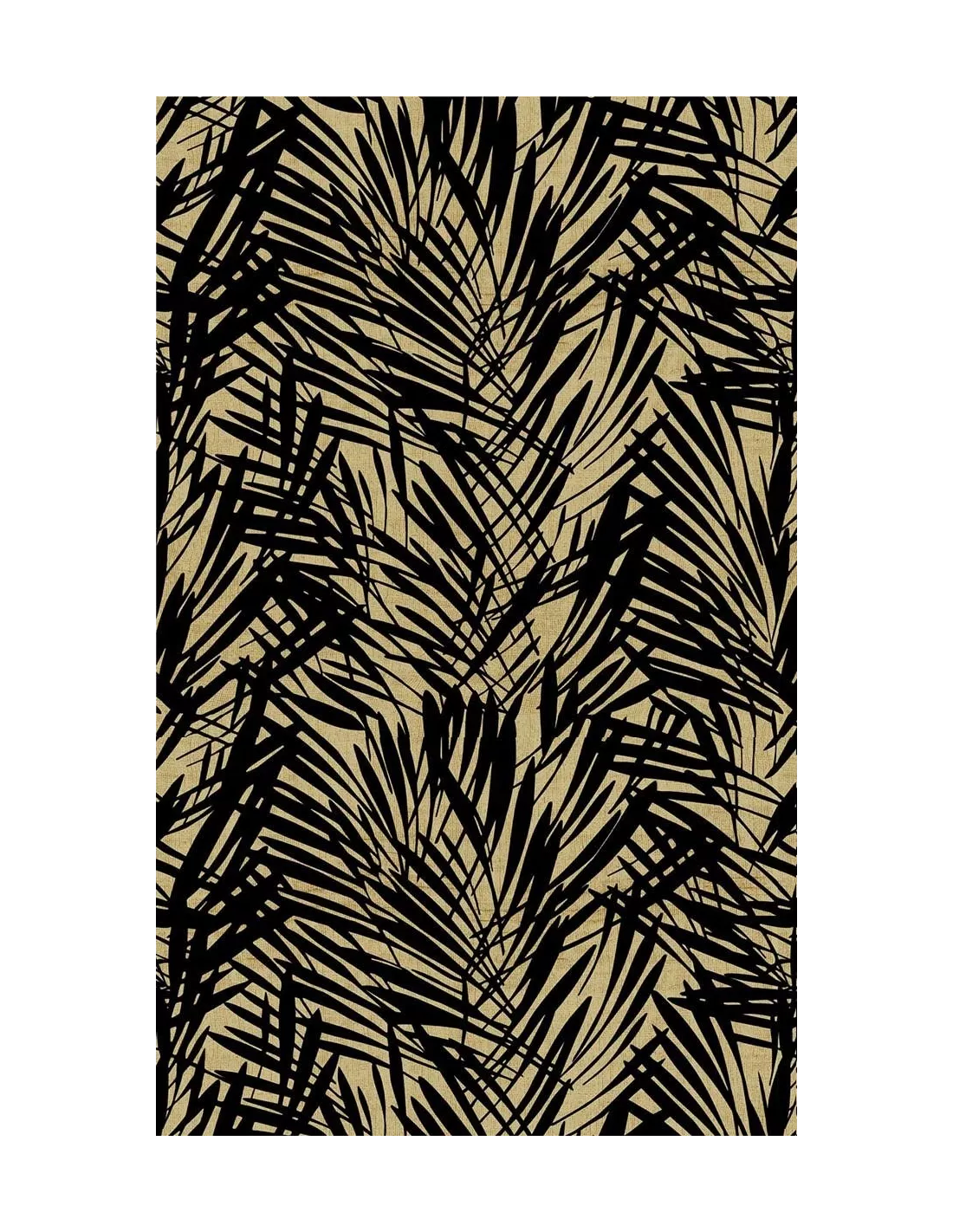 Papier peint de feuillage de palmes noir et doré, Lelièvre