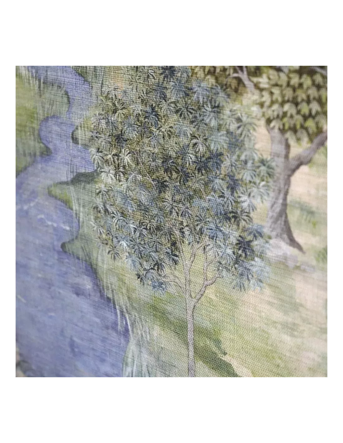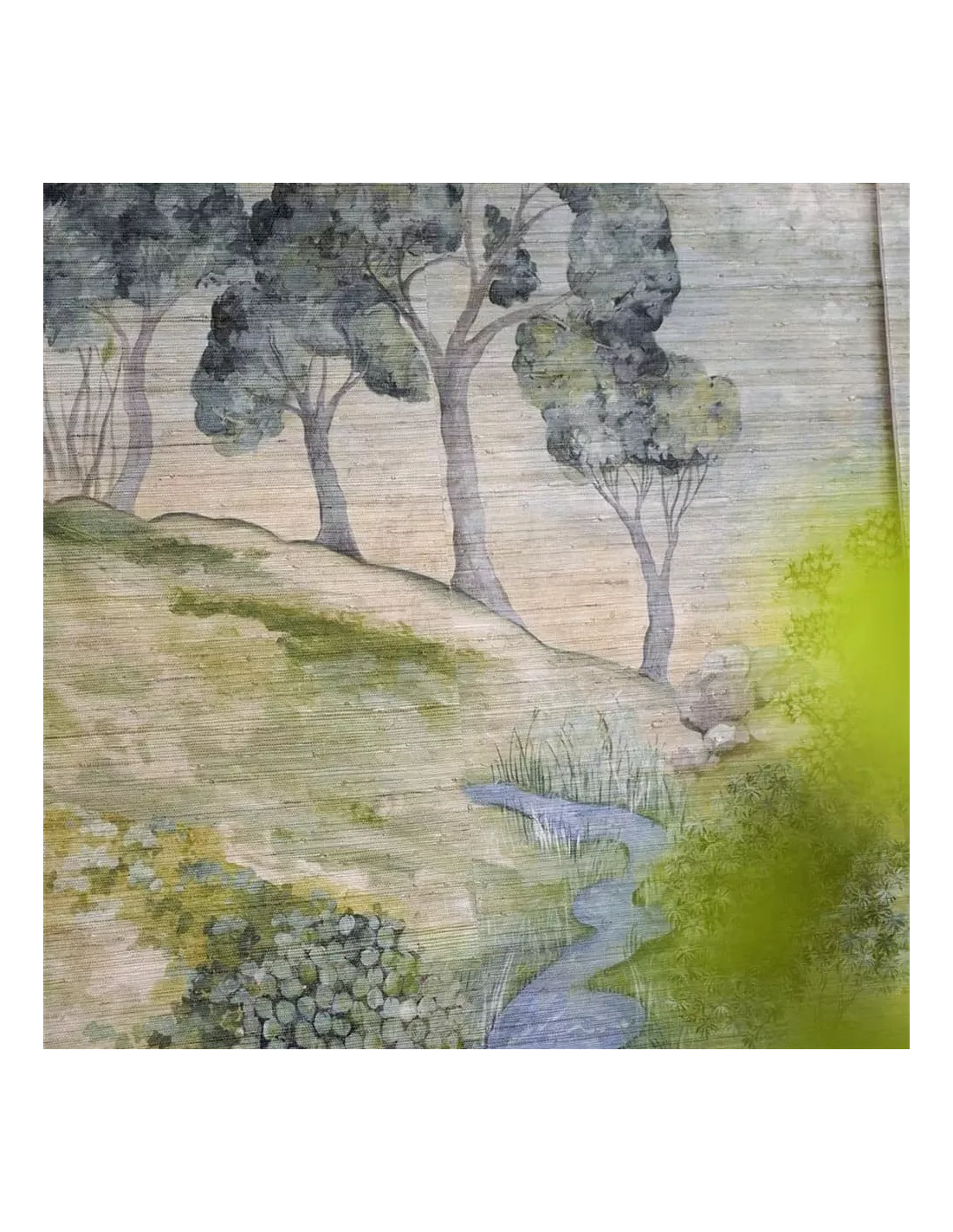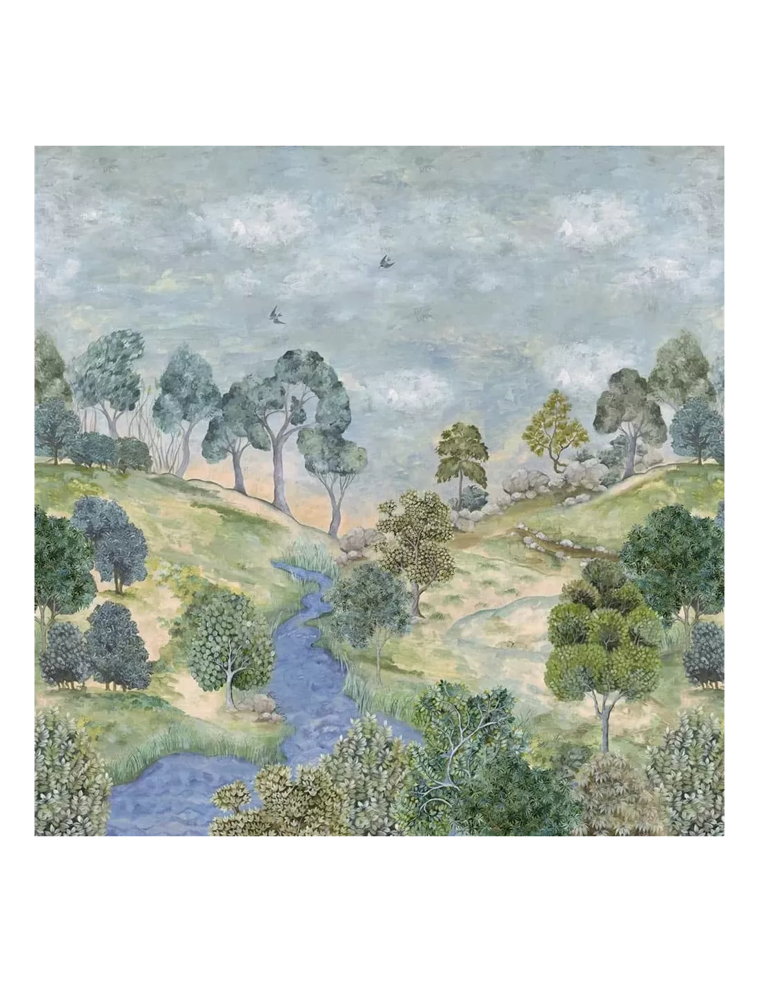 Aux allures de peinture à l’huile, le motif du panneau Bandipur Sky représente un paysage pittoresque. Inspiré des anciennes peintures miniatures indiennes, il dessine un ruisseau dans une vallée arborée verdoyante. Des oiseaux en plein vol apportent du mouvement et de la vie à l’ensemble. Ce revêtement mural Designers Guild apporte un morceau de nature aux décors intérieurs.
