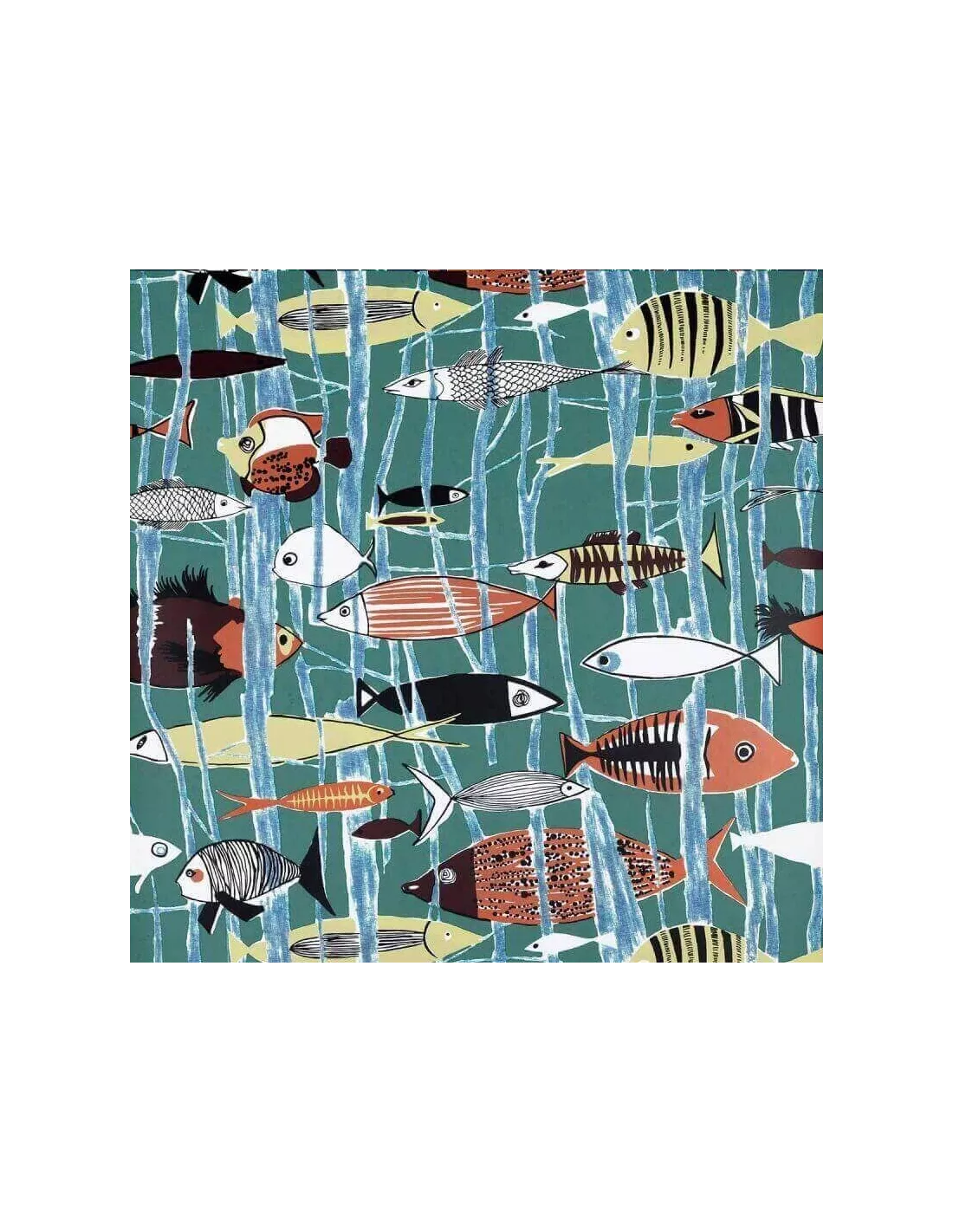 Des variétés de poissons composent le motif du papier peint Recif Azur. Ces poissons présentés dans des couleurs différentes nagent entre de longues et fines algues, illustrant une scène aquatique. Ce papier peint, imaginé par la Maison Leleu et édité pour Lelièvre, adopte des teintes naturelles qui donnent un style audacieux à votre espace de vie. Ce papier peint possède un support intissé, ce qui rend sa pose plus facile. La colle doit être appliquée sur le mur.