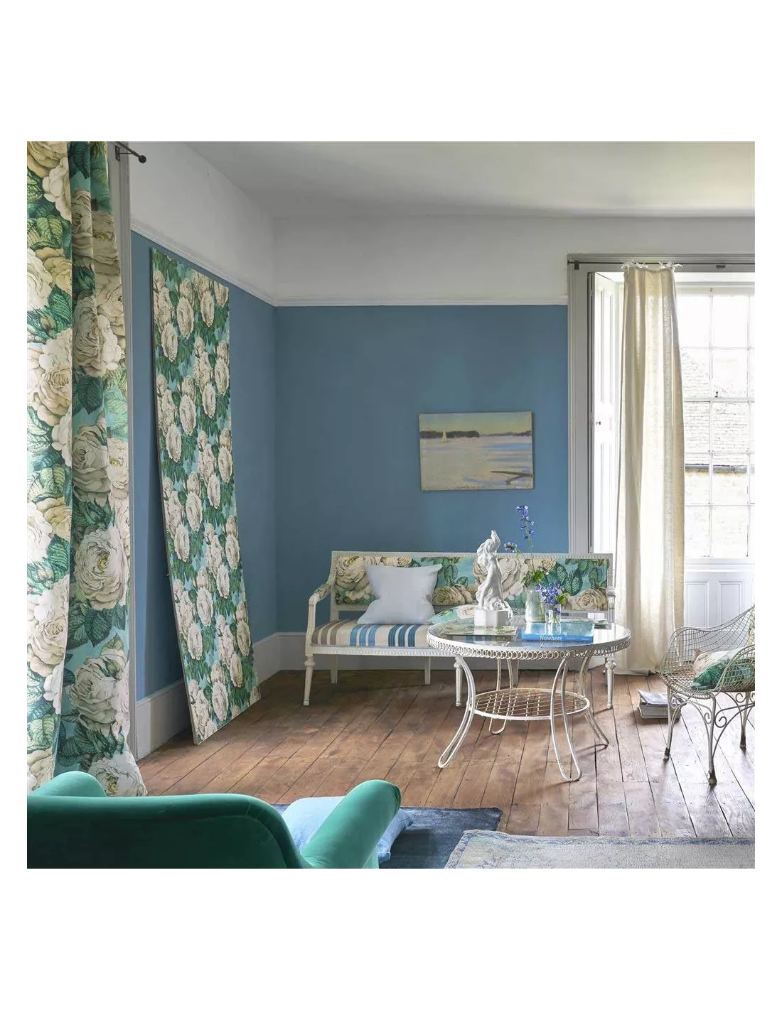 Papier peint roses vert et bleu, John Dorian