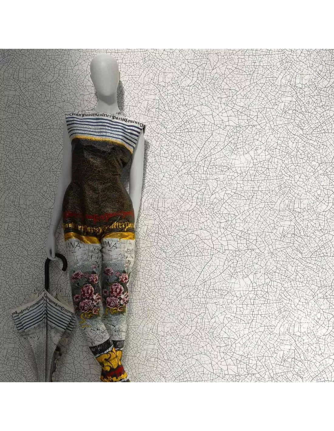 Papier peint Intissé au motif d’un sol craquelé blanc et noir, Jean Paul Gaultier