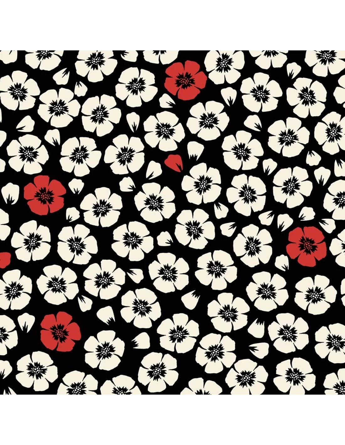 Papier peint vinyle noir se composant d’un parterre de petites fleurs et pétales de coquelicots dans un style minimaliste, Jean Paul Gaultier