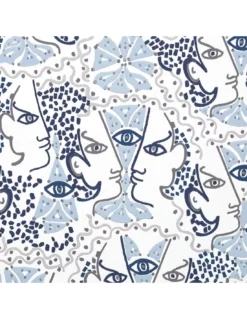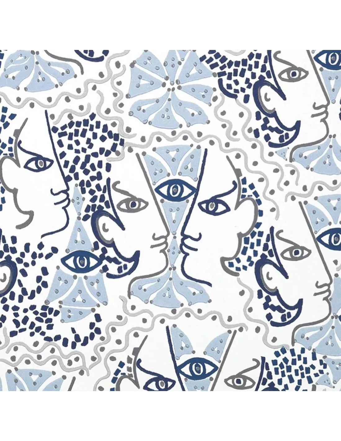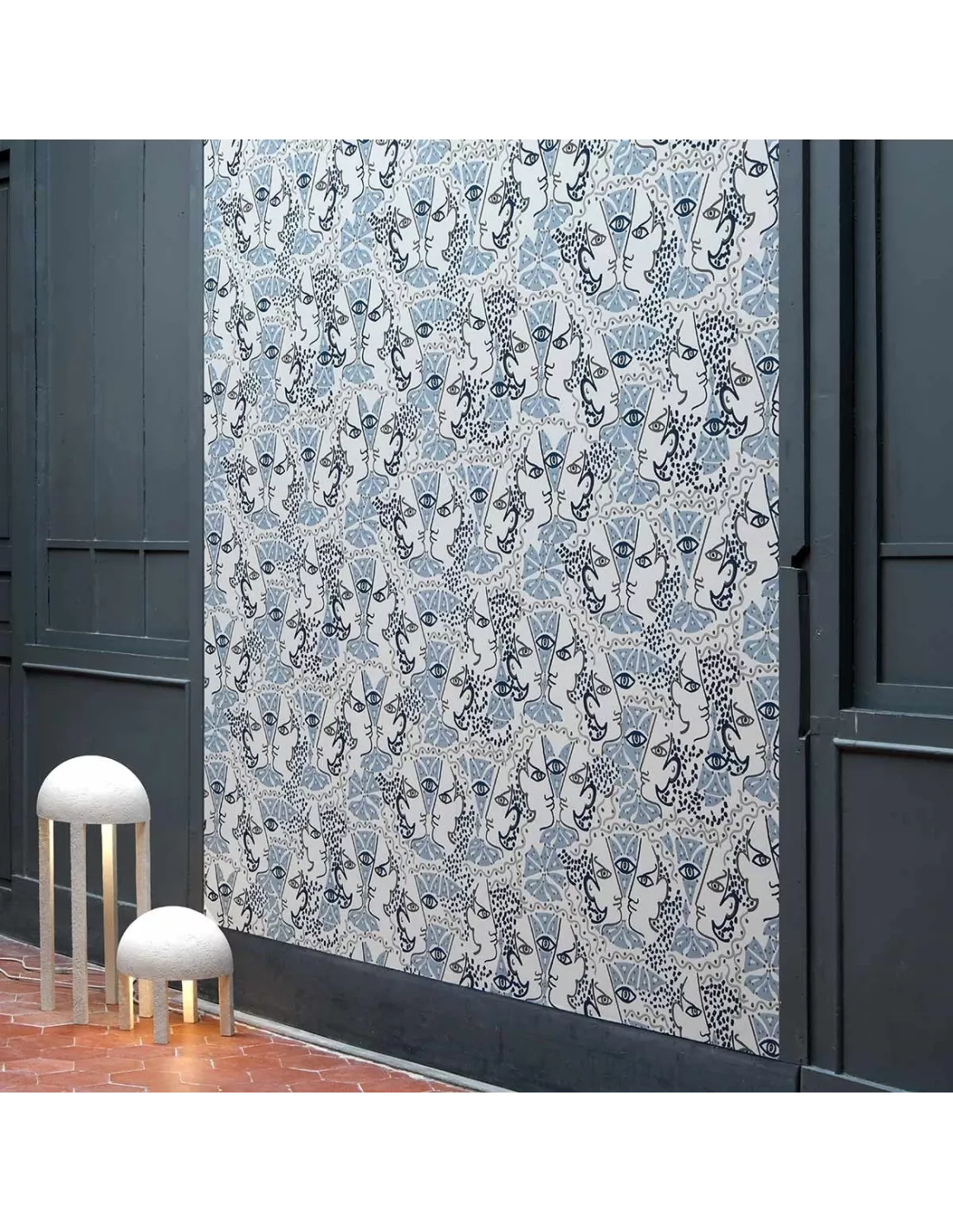 Papier peint vinyle bleu représentant deux visages de profil face-à-face qui ne font plus qu’un au milieu sous forme d’un œil de cyclope, Lelièvre