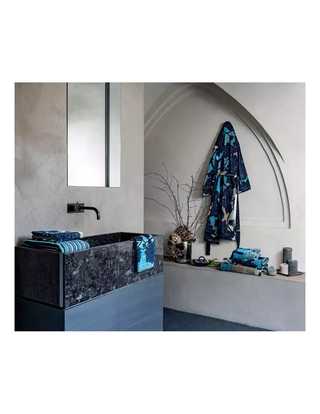 Le peignoir Shakuyako 150 est réalisé en tissu éponge velours dans des tons bleus profonds et captive le regard dès le premier coup d’œil. Il est un véritable cocon de confort, parfait pour se sécher après un bain relaxant ou s’envelopper dans un moment de pure détente.