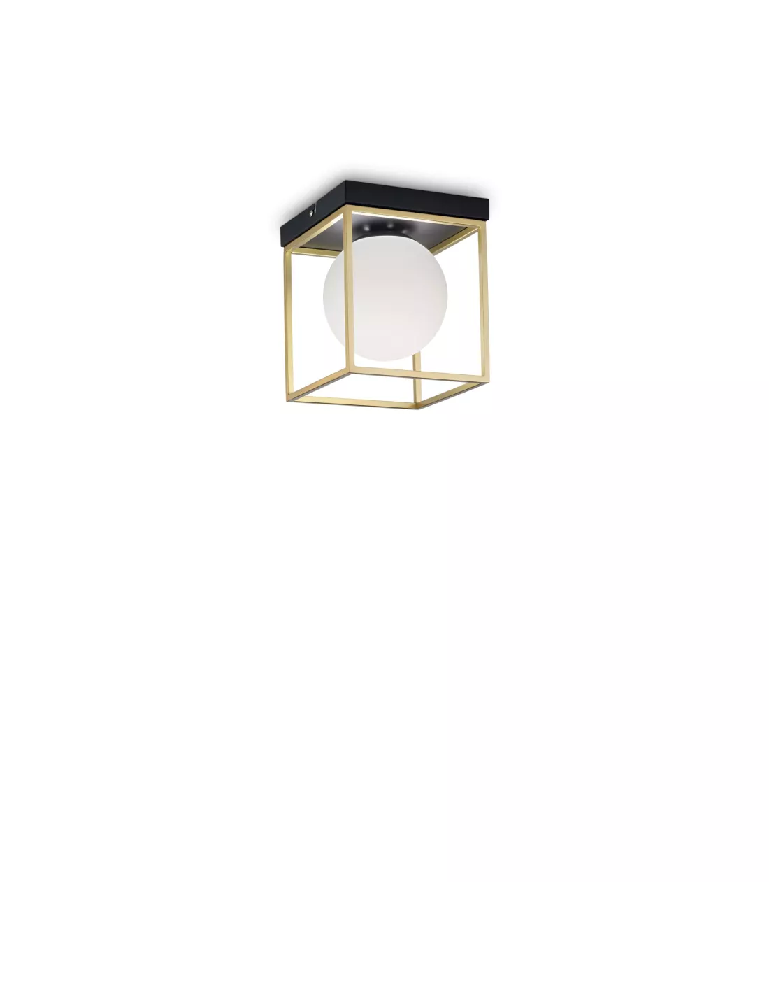Plafonnier design carré en métal doré et noir 1 lampe, Ideal Lux