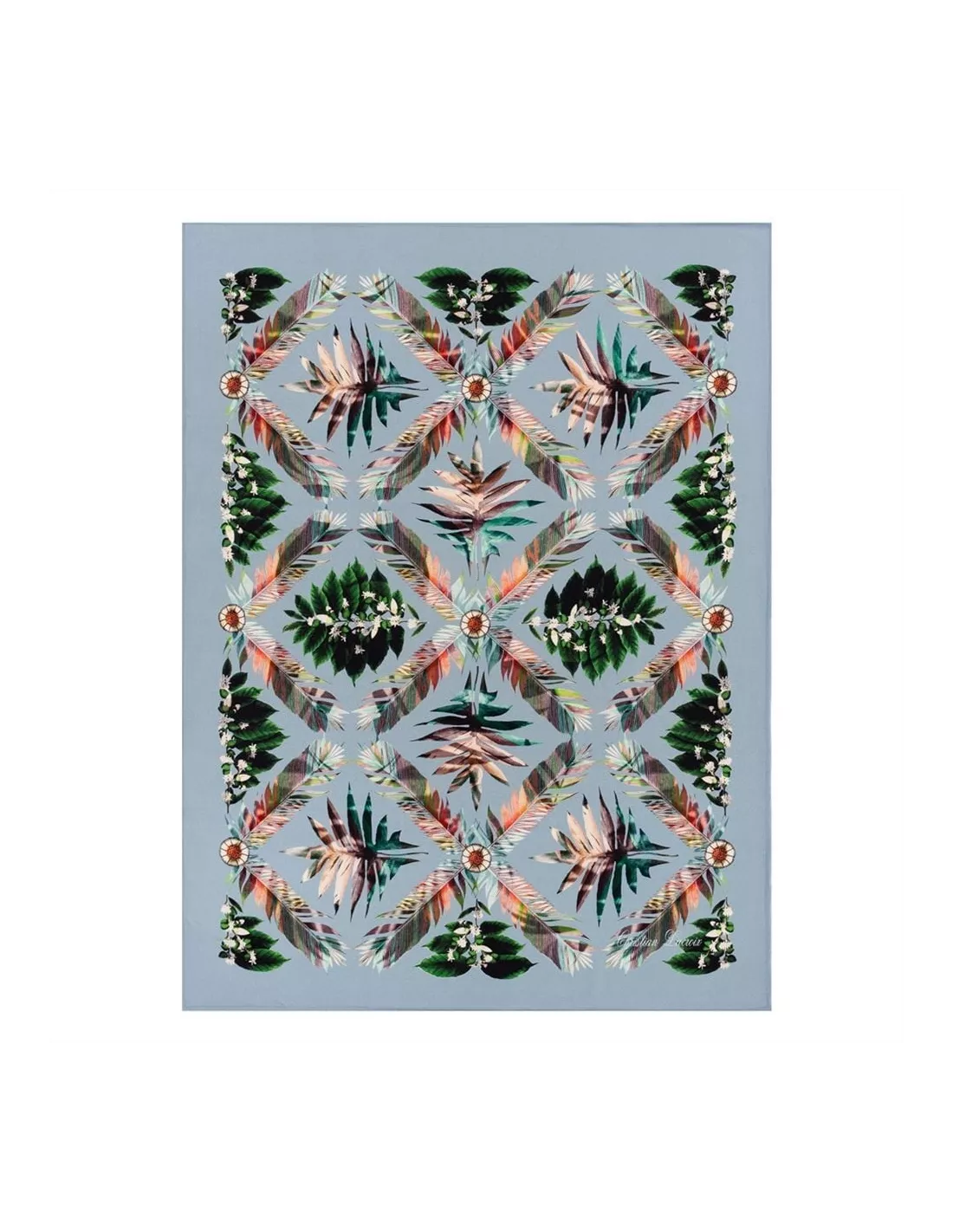 Plaid en laine bleu arborant des formes graphiques de feuilles et de palmiers à effet de plumes, Christian Lacroix