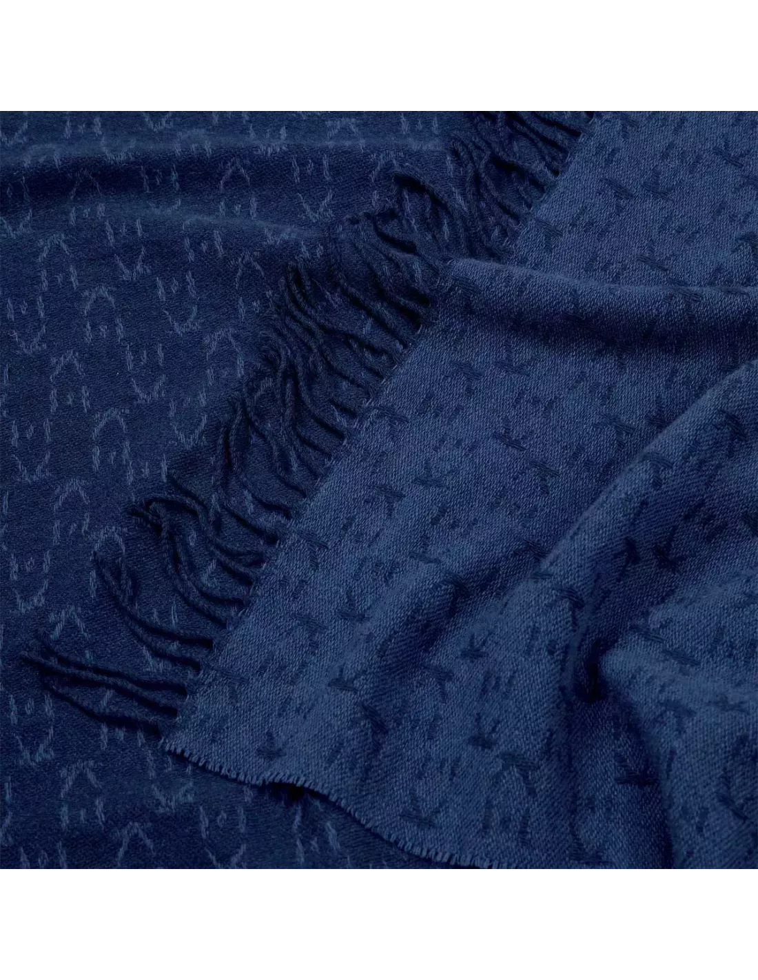 Plaid frangé bleu en laine et cachemire, K3 design by Kenzo Takada