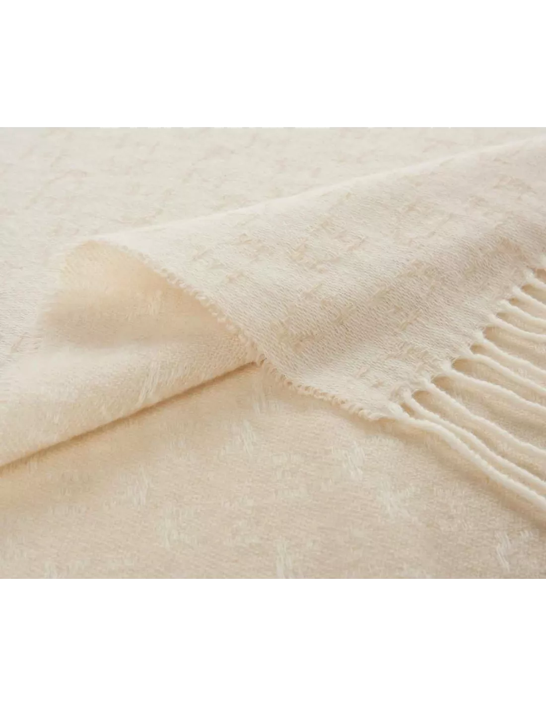 Plaid frangé en laine et cachemire ivoire monogramme, K3 design by Kenzo Takada