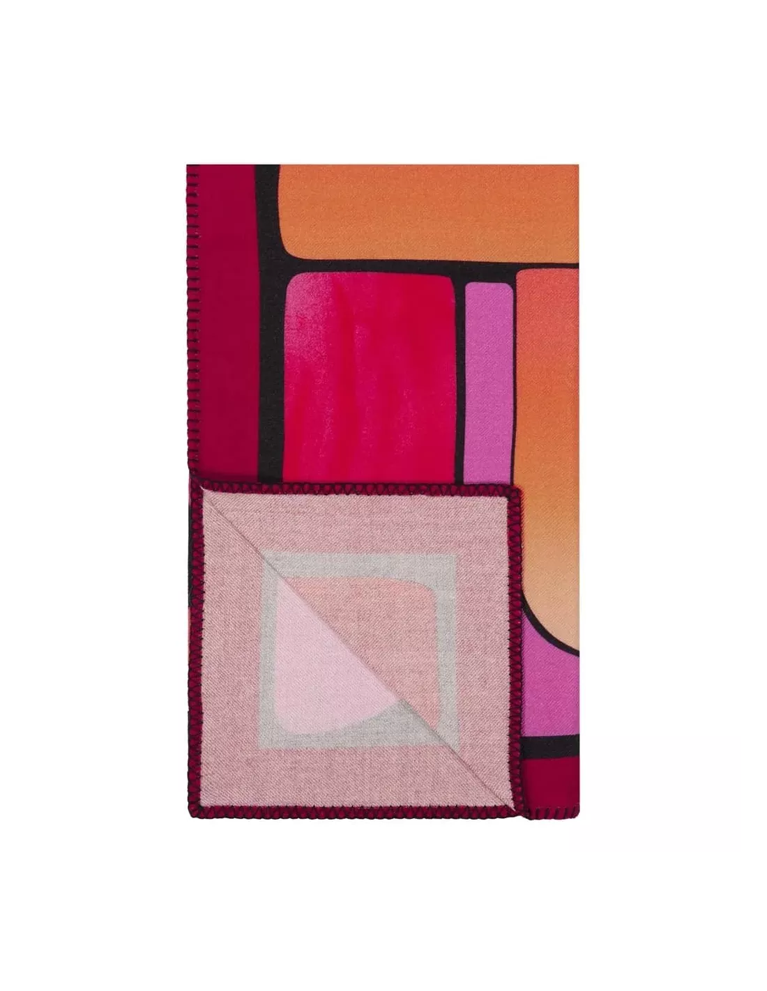 Le motif géométrique riche et audacieux du plaid est imprimé numériquement, ce qui lui confère une netteté et une précision exceptionnelles. Les tons magenta et rouge profonds se contrastent magnifiquement avec le fond noir, créant ainsi une combinaison de couleurs vibrantes et élégantes.