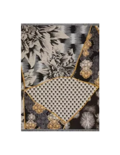 Plaid frangé en laine noir au motif patch-Kintsugi, K3 design by Kenzo Takada
