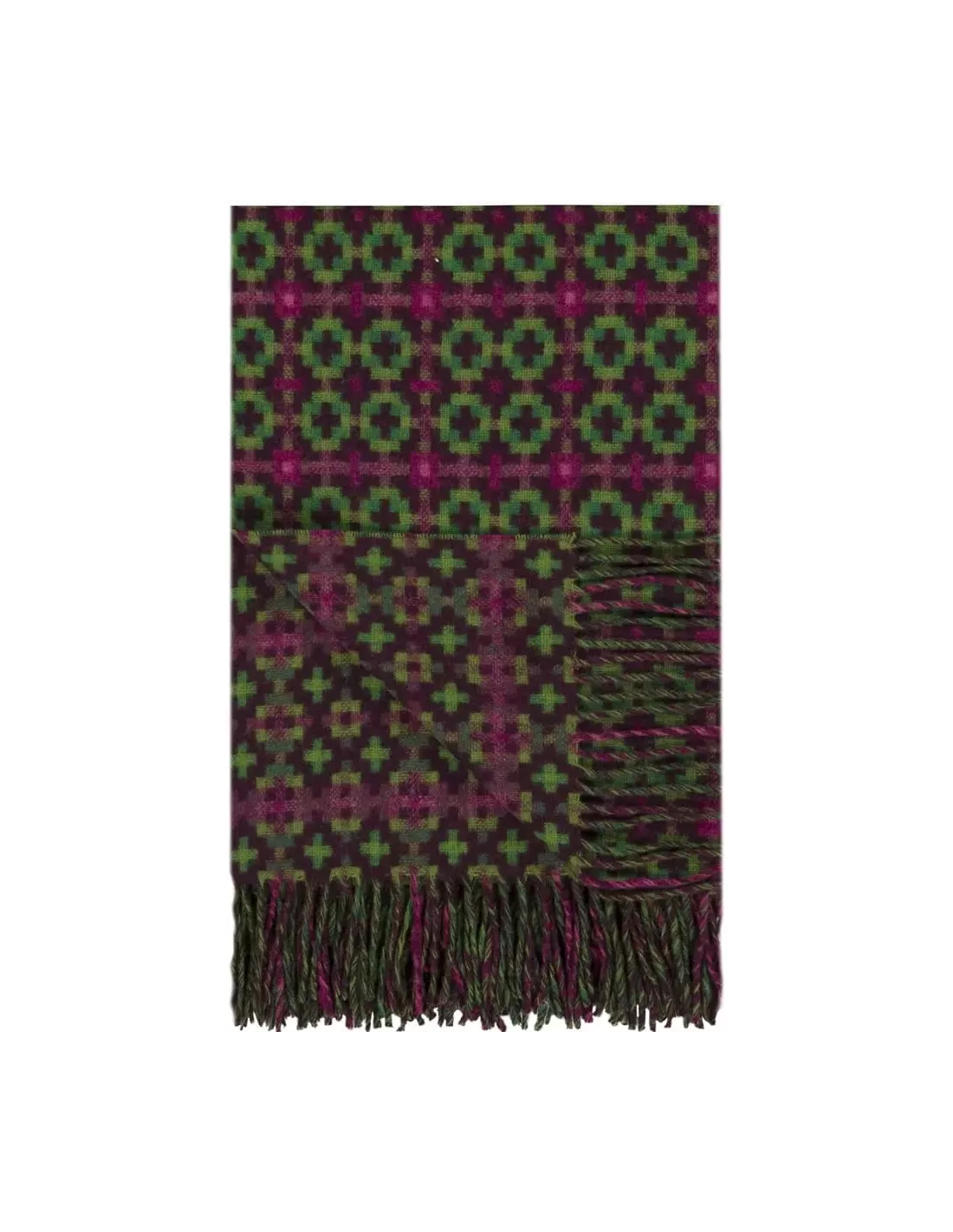 Inspiré des couvertures galloises traditionnelles, ce superbe plaid graphique est tissé avec de la pure laine mérinos luxueuse. Dans d’élégants tons vibrants de rose magenta et de vert lime, ce plaid est orné d’un bord frangé sur les deux faces.