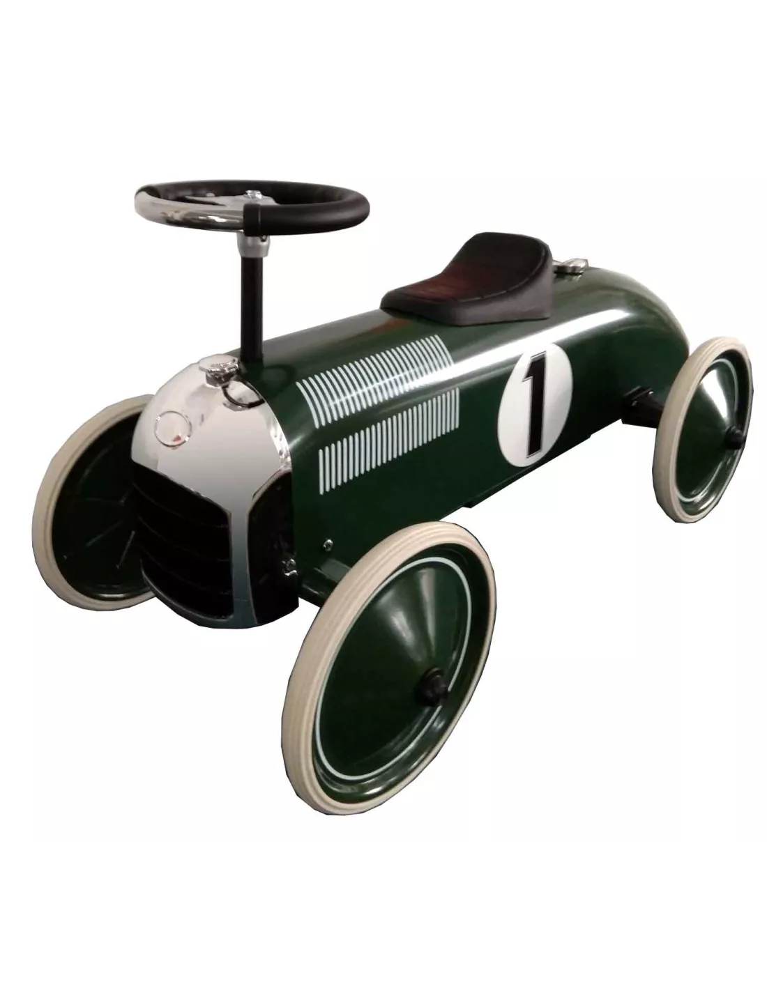 Le porteur voiture ancienne vert foncé est en métal laqué et chromé. Craquez pour son authenticité et la résistance de ses matériaux.