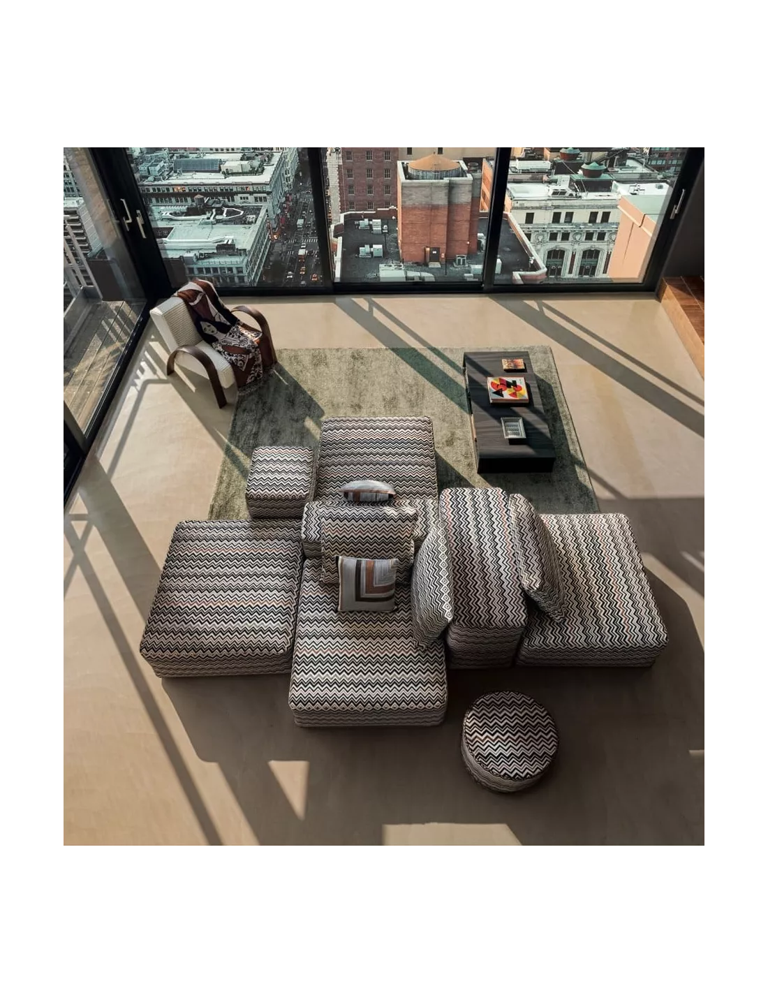 Profitez d’un confort élégant avec le pouf Belfast 160 Missoni Home en tissu Trevira CS jacquard teinté dans la masse, noir et marron, avec un motif zigzag iconique. Ce pouf rond trouvera sa place dans toutes les pièces. Coordonnez ce pouf aux accessoires de décoration tels les coussins et plaids pour créer une ambiance Missoni unique dans votre intérieur.