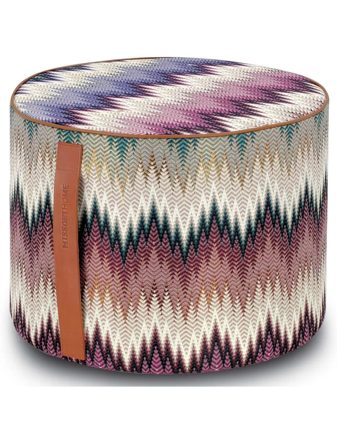 Le pouf Phrae Missoni Home arbore le célèbre motif « chevron » de la marque. Ce pouf Missoni Home est confectionné dans un très beau tissu jacquard aux couleurs tempérées par des teintes sablées. Nomade, il est muni d’une anse en cuir sur le côté. Le pouf Phrae cylindre vous permettra de disposer d’un petit siège d’appoint supplémentaire et d’apporter une touche raffinée à votre pièce. Des coussins et tissus assortis sont également disponibles pour créer tout un univers dans le même esprit qui apportera convivialité à votre intérieur. Ce pouf est déhoussable avec fond en tissu Eucla.