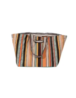 Ses rayures apportent une touche chaleureuse et élégante à ce sac cabas, qui se coordonne parfaitement avec la collection complète de la marque Les Toiles du Soleil. Transats, coussins, nappes… Vous pourrez ainsi créer un univers harmonieux et résolument estival autour de ce sac cabas tendance.
