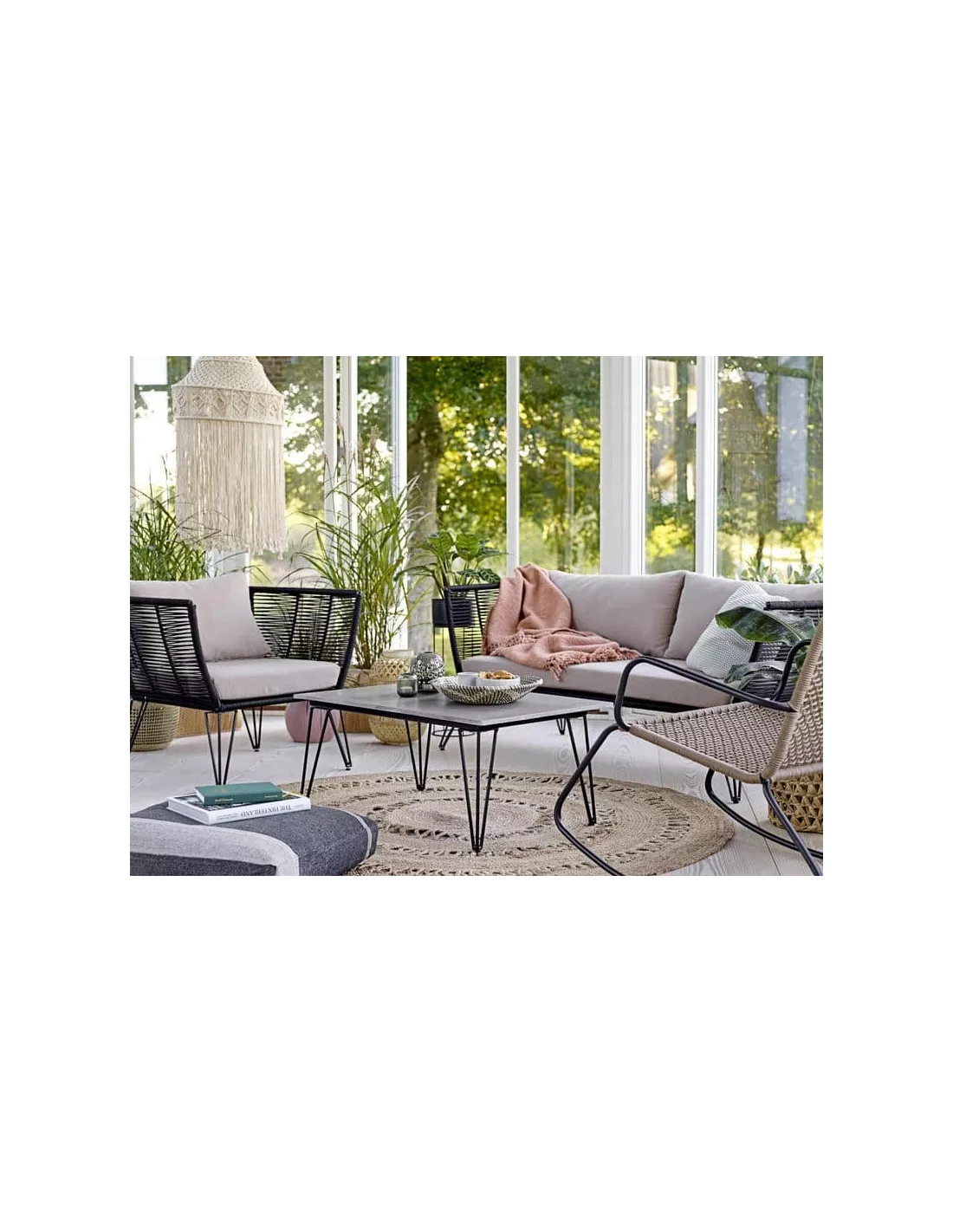 Apportez une ambiance de détente chic à votre extérieur ou à votre intérieur avec ce très beau salon d’extérieur Mundo noir ou beige de la Maison Bloomingville, composé de 2 fauteuils, 1 canapé et d’1 table basse Mundo.