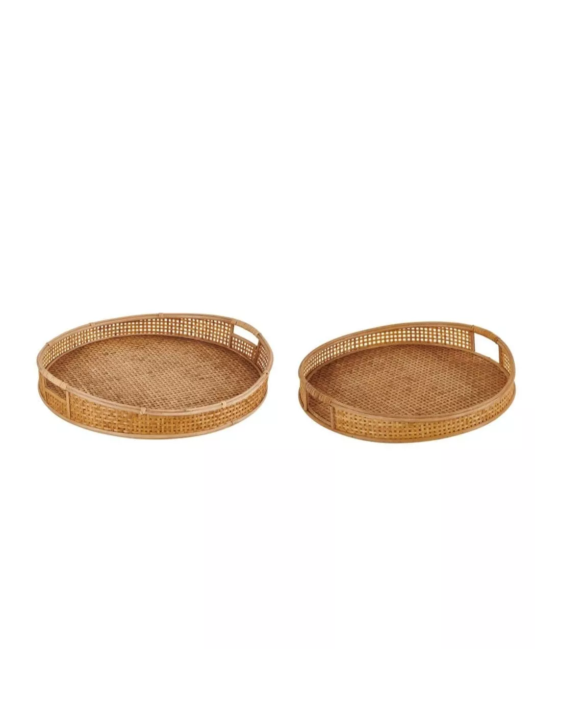 Set 2 plateaux en bambou & rotin Ø49 et 60 cm