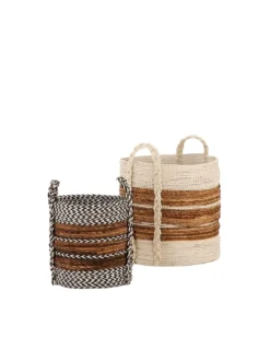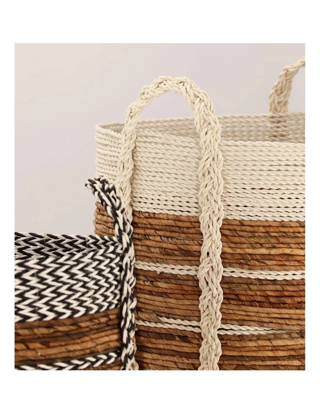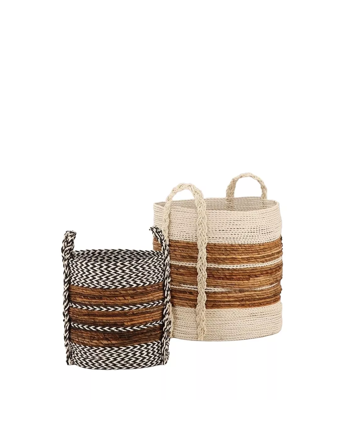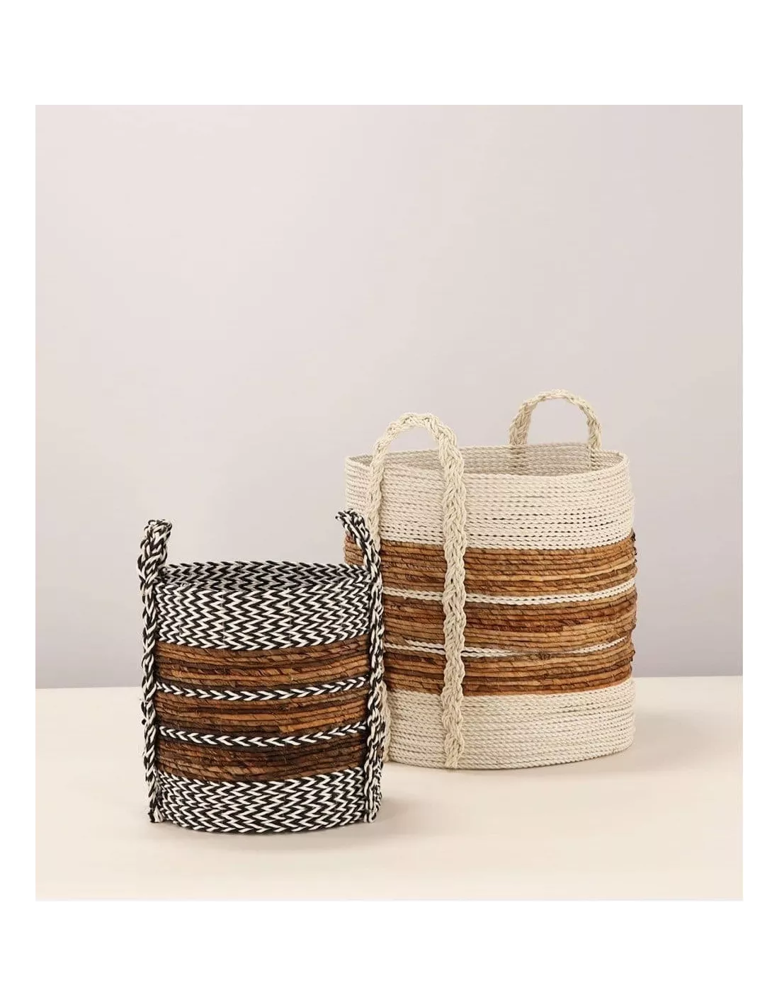 Ce set de 2 paniers en raphia vous séduira avec son style déco ethnique chic ou bien bord de mer. A l’intérieur d’une chambre, d’une entrée ou d’un salon, il donnera un style tendance à votre pièce. La structure en raphia et herbier marin fait de ces paniers des éléments de déco aussi durables que naturels. On aime aussi les petits détails tels que la qualité de fabrication et le côté pratique pour le rangement.