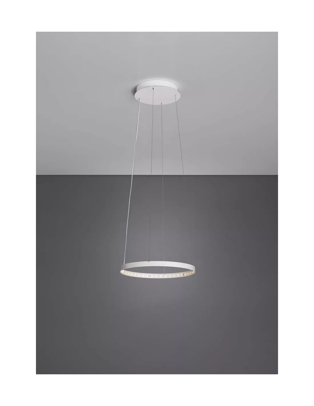 La suspension Circle Ø30 blanche Le Deun Luminaires intègrera votre décoration intérieure en toute simplicité et avec chic. La couleur blanche de cette suspension design apportera de la douceur et de la simplicité dans votre décoration. Originale et tendance, elle génère une lumière directe et indirecte. Le cercle de cette suspension est en acier recouvert de peinture Epoxy blanche, donc très résistante. La suspension Circle est composée de 48 LED blancs chauds (2700 K°) incrustés. Cette suspension design est équipée d’un transformateur électronique de 110/220 volts, muni d’une télécommande variateur de puissance 0 à 100 %.