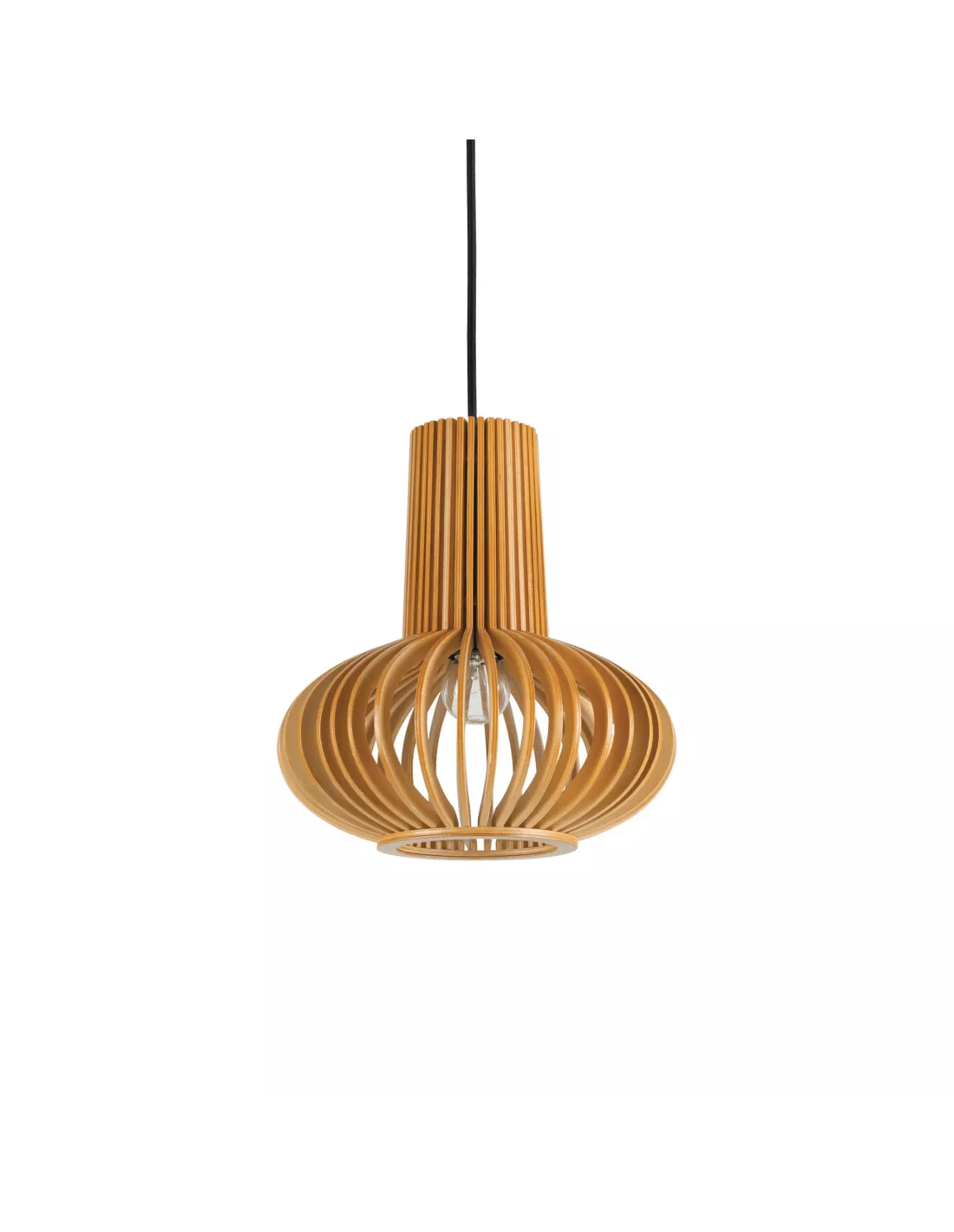 • Abat-jour en bois naturel verni. Câble en tissu noir