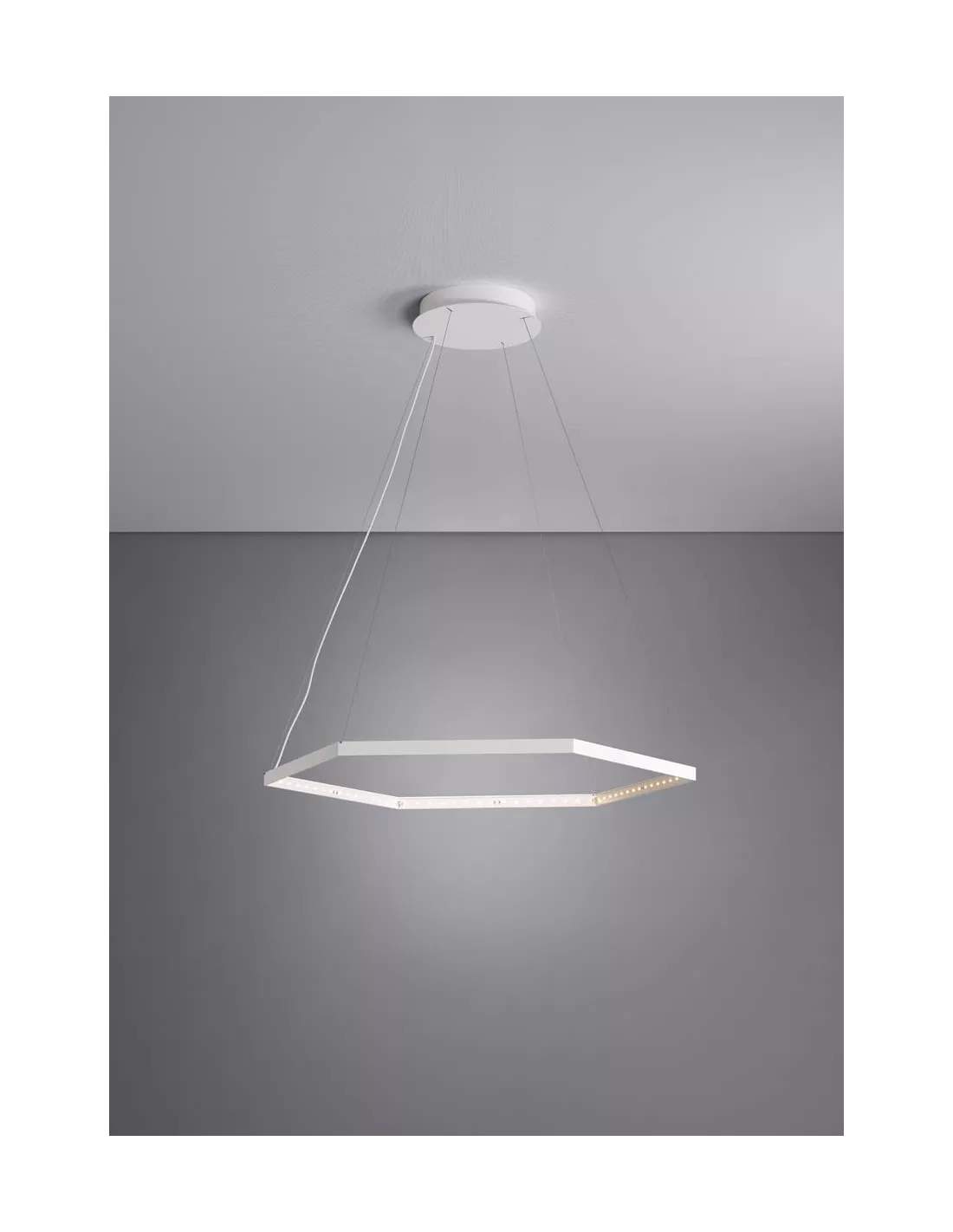 La suspension Hexa blanche Le Deun Luminaires, est une suspension originale générant une lumière directe et indirecte. La structure de la suspension est en acier recouvert de peinture Epoxy blanche, donc très résistante. La suspension Hexa est composée de 96 LED blancs chauds (2700 K°) incrustés. Cette suspension est équipée d’un transformateur électronique de 110/220 volts, muni d’une télécommande variateur de puissance 0 à 100 %.